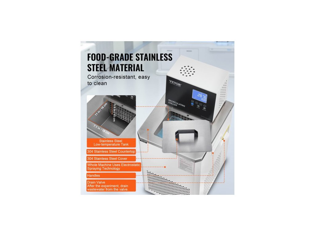 Laboratorní chladicí oběhový systém , 6l chladicí kapalina pro nízkou teplotu, oběhové čerpadlo chladicího systému -4°F-212°F, LCD displej, vodní lázeň z nerezové oceli 304, recirkulační vodní chlazení chladicího systému