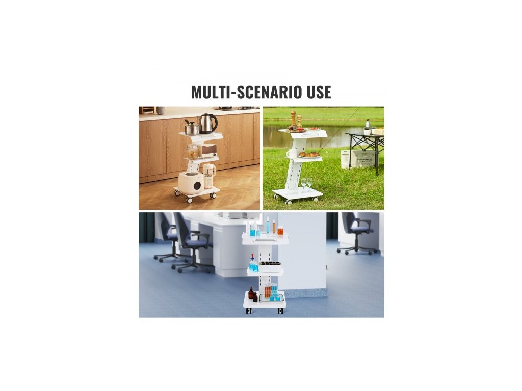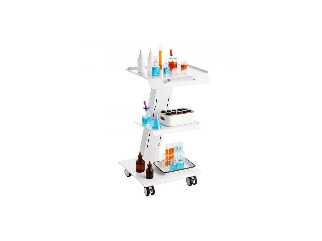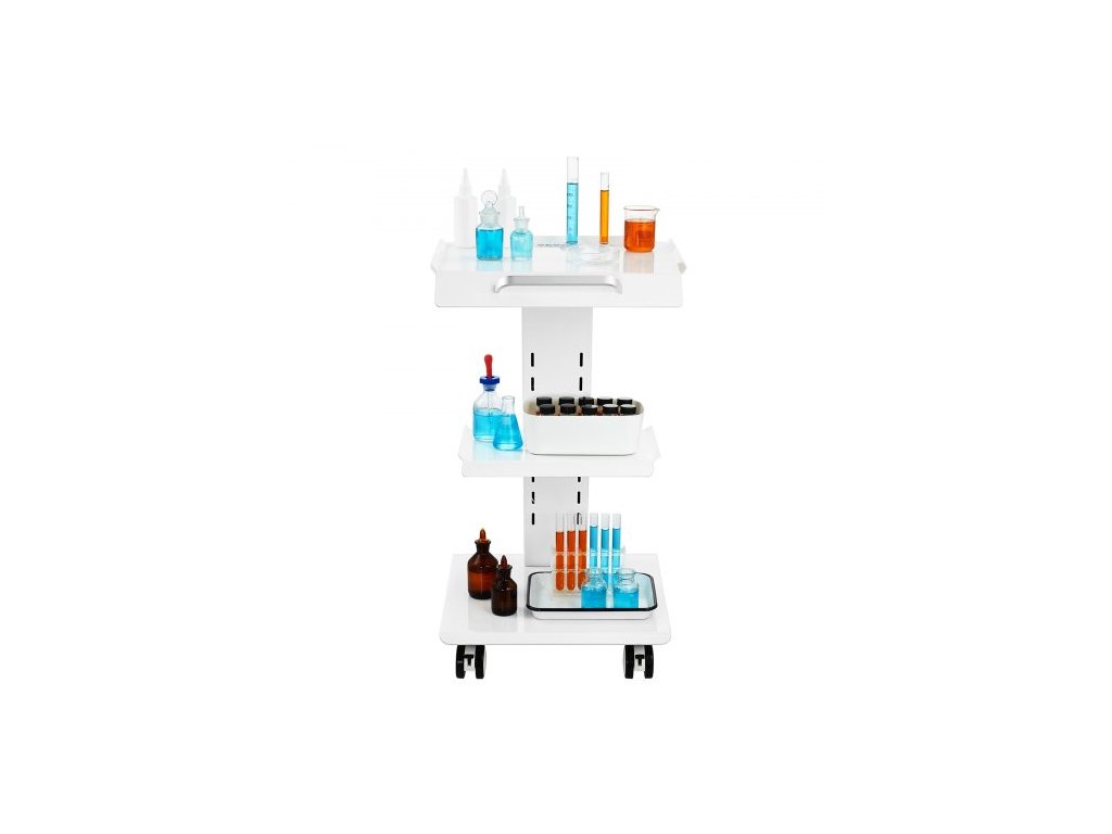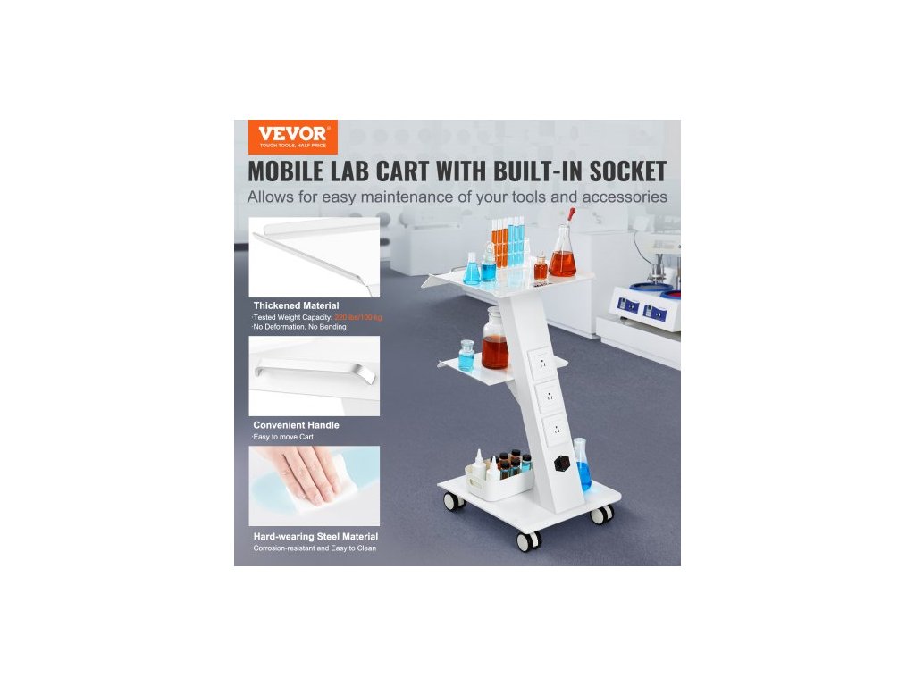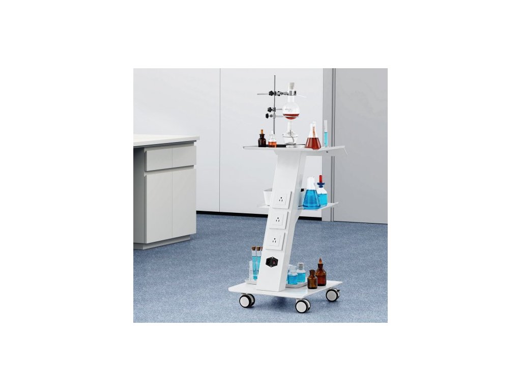 Laboratorní vozík , pojízdný laboratorní vozík s vestavěnou zásuvkou, třívrstvý kovový mobilní vozík, pojízdný vozík s otočnými kolečky, nosnost 100 kg, pro laboratoře, kliniky, kosmetické salony a salony