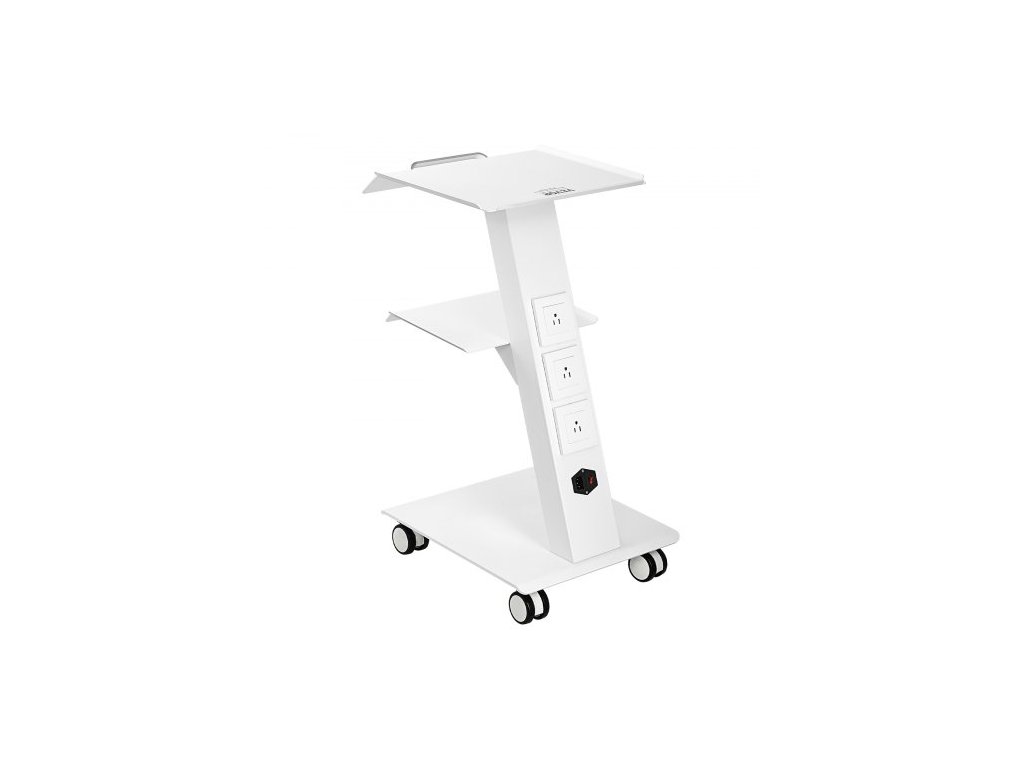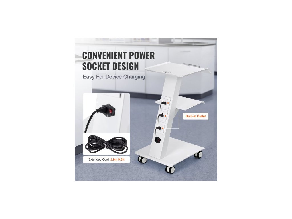 Laboratorní vozík , pojízdný laboratorní vozík s vestavěnou zásuvkou, 3vrstvý kovový mobilní vozík, pojízdný klinický vozík s otočnými kolečky, nosnost 100 kg, pro laboratoře, kliniky, kosmetické salony a salonyNosnost 100 kg