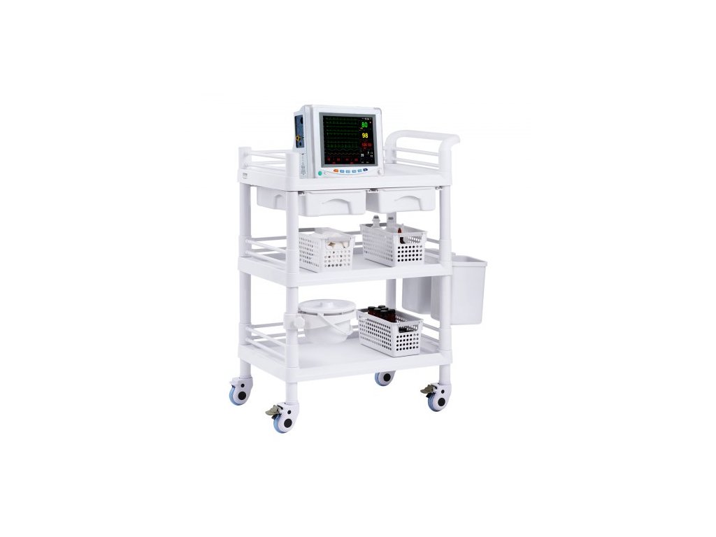 Laboratorní vozíky se 3 úrovněmi, laboratorní vozík se 3 přihrádkami a 4 tichými kolečky, mobilní lékařský vozík z PP materiálu, laboratorní vozík na kolečkách se 3 odpadkovými koši pro laboratoř, kliniku, nemocnici, salon, bílýVysoká nosnost a stabilita