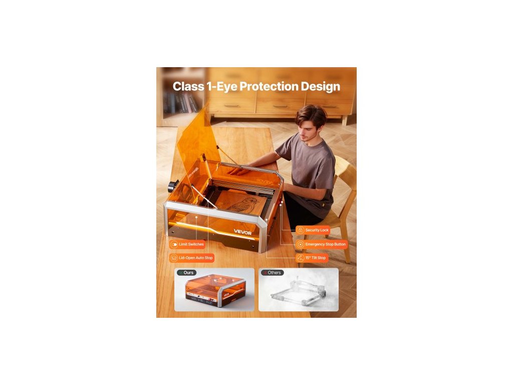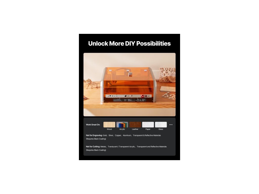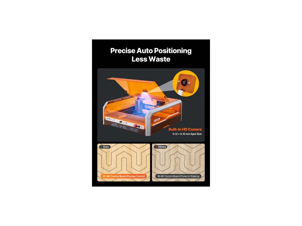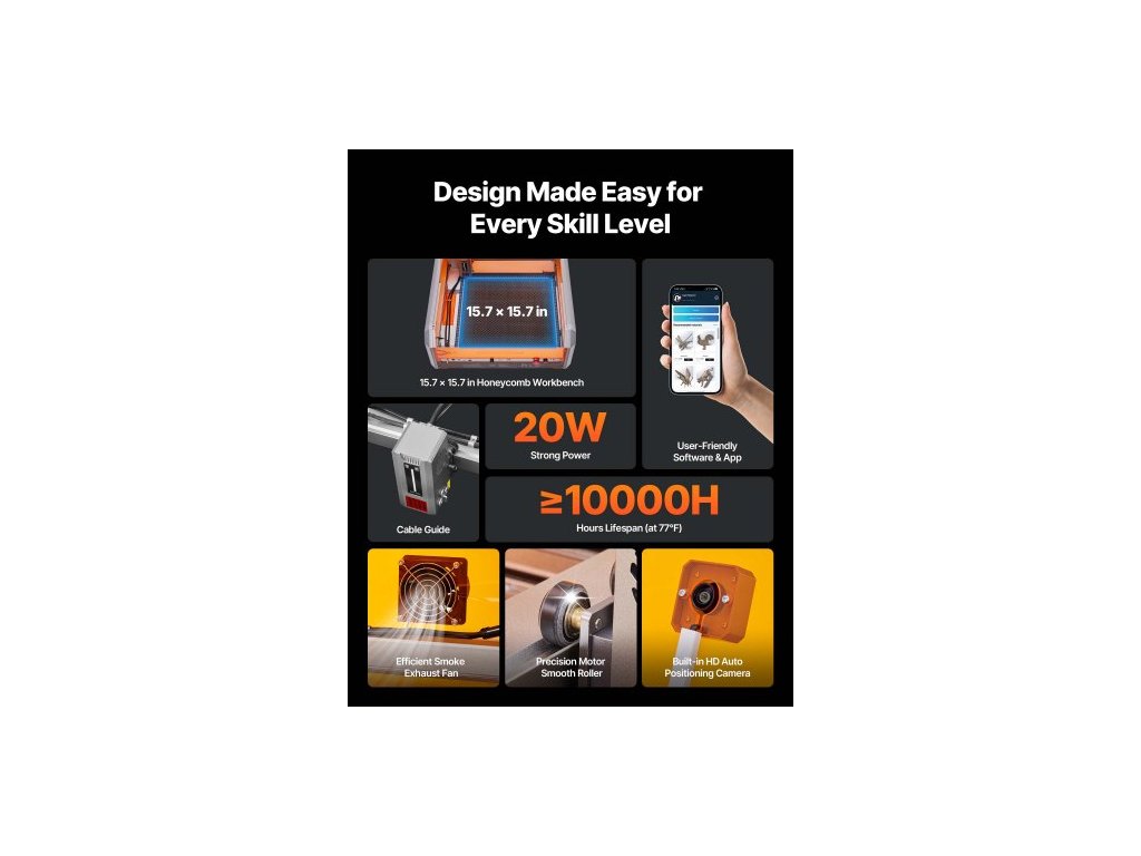 Laserový gravírovací a řezací stroj , 20 W, laserový gravírovací a řezací stroj s krytou kamerou, laserová řezačka, pracovní plocha 400 x 400 mm, 30 000 mm/min, pro dřevo, kůži, sklo, papír, některé kovy, třída 1Plně uzavřená ochranná konstrukce