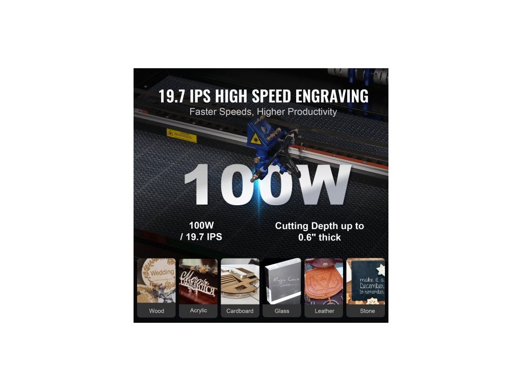 Laserový gravírovací stroj 100W CO2, 61 x 89 cm (24 x 35 palců), 500 mm/s (19,7 IPS) s obousměrným vzduchovým přídavkem, kompatibilní s LightBurn, CorelDRAW, AutoCAD, Windows, Mac OS, Linux, pro dřevo a akrylové tkaniny Více