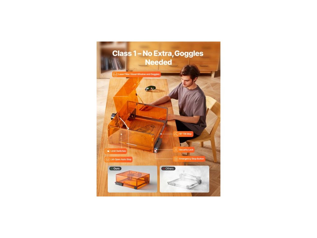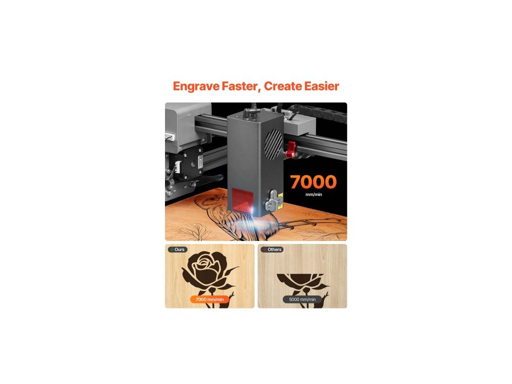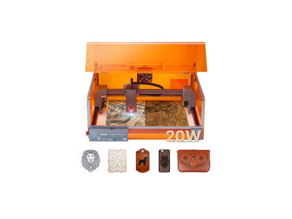 Laserový gravírovací stroj , 20 W, laserový gravírovací a řezací stroj s krytem, laserový řezací gravírovací stroj, 7000 mm/min, pracovní plocha 300 x 300 mm, pro dřevo, kůži, sklo, některé kovy, třída 1Plně uzavřená ochranná konstrukce
