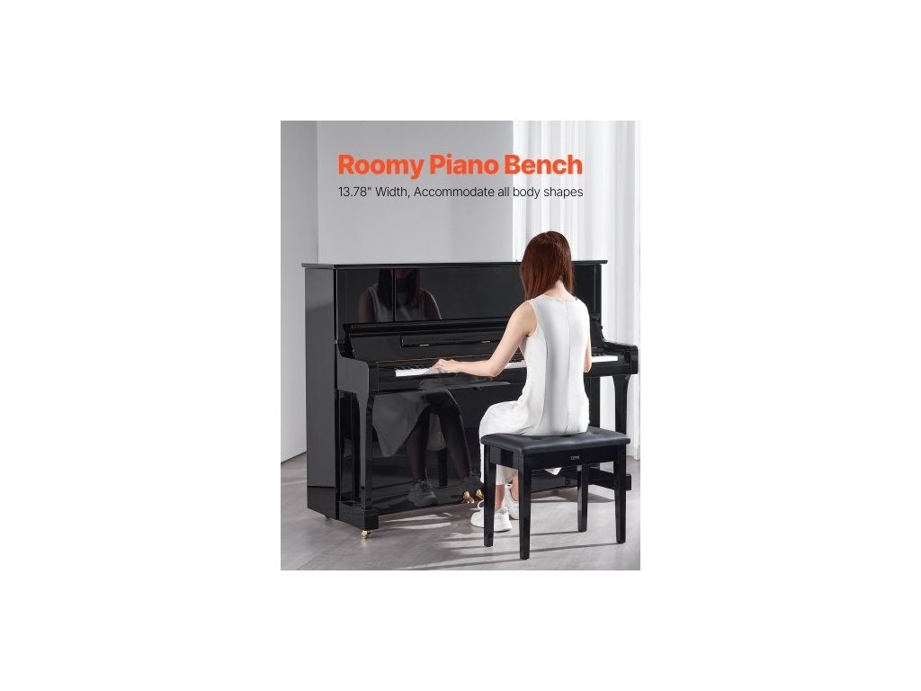 Lavice na klavír s úložným prostorem, polstrované sedátko, dřevěná knihovna, stolička 560x350x485 mmNastavitelná lavice na klavír