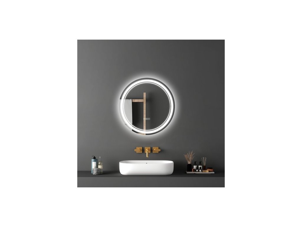 LED koupelnové zrcadlo, 60 cm LED kulaté toaletní zrcadlo s předním a podsvícením, zrcadlo s paměťovou funkcí a světly s úpravou proti zamlžování, plynule stmívatelné koupelnové zrcadlo ve 3 barvách, nástěnné