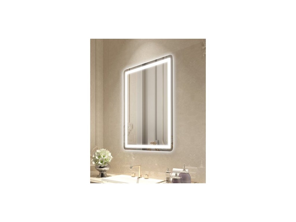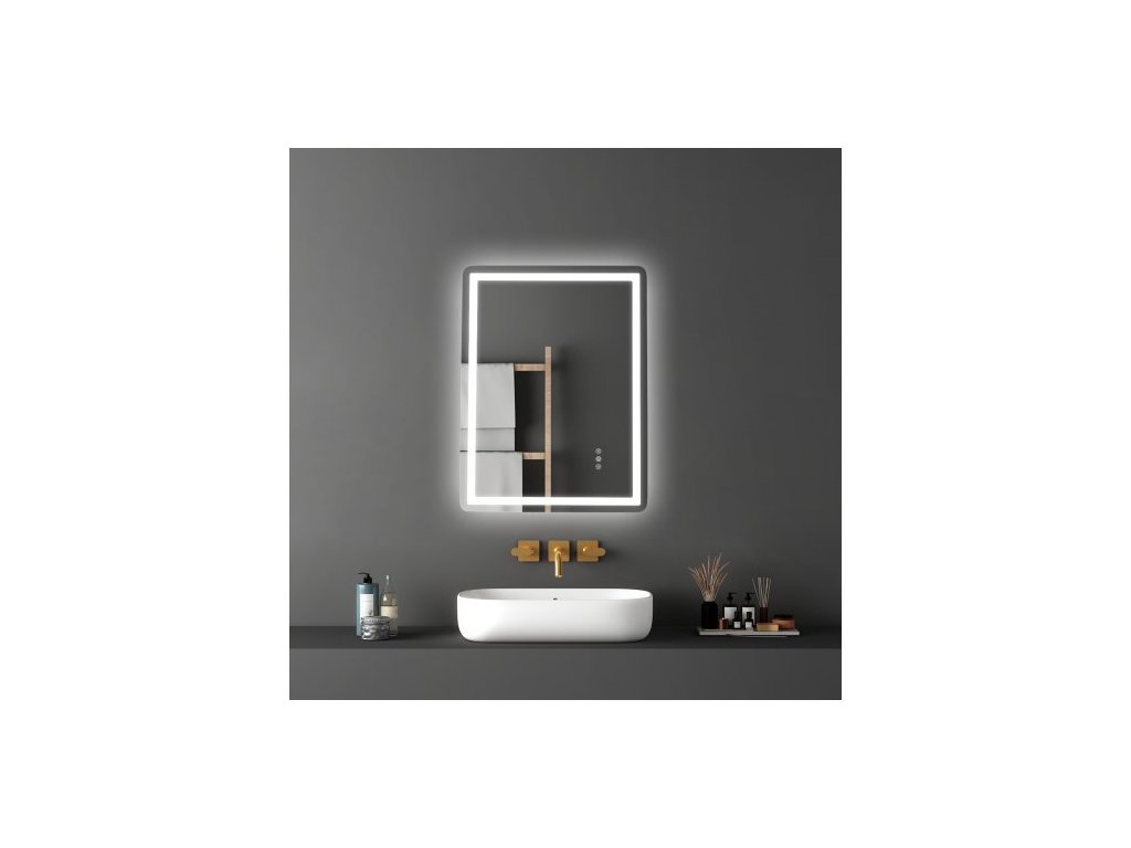 LED koupelnové zrcadlo, 60 x 80 cm LED koupelnové zrcadlo s předním a zadním podsvícením, zrcadlo s paměťovou funkcí a světly proti zamlžování, plynule stmívatelné koupelnové zrcadlo ve 3 barvách, nástěnné
