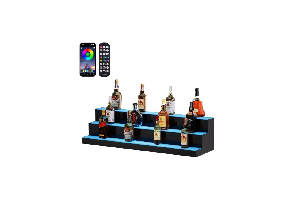 LED osvětlený stojan na lahve s alkoholem, barová police, ovládání RF a aplikací, 101,6 cm, 3 kroky
