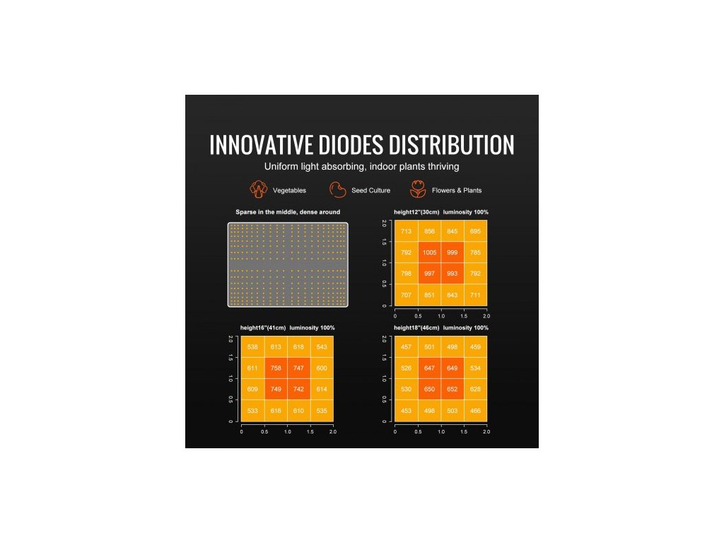 Pro čtyři fáze klíčení, sazenice, růstu a kvetení lze regulovat výšku a jas světla, aby se rostlině lépe dařilo.