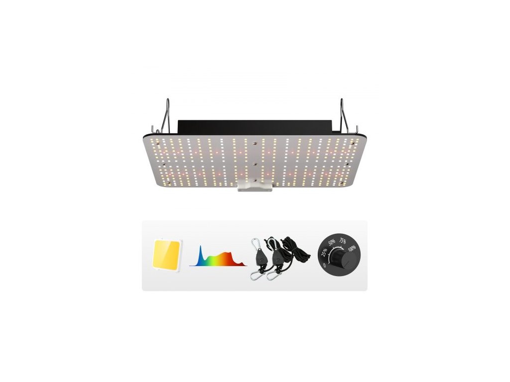 LED pěstební světlo , 150W stmívatelné plné spektrum, vysoce výkonná diodová lampa Samsung 2B1B pro pěstování pokojových rostlin, sazenic zeleniny a květů ve skleníku, řetězový ovladač pro pěstební stan 3 x 3 stopy.Ozařování podobné slunečnímu světlu a přizpůsobitelné schéma osvětlení pro různé fáze růstu rostlin.