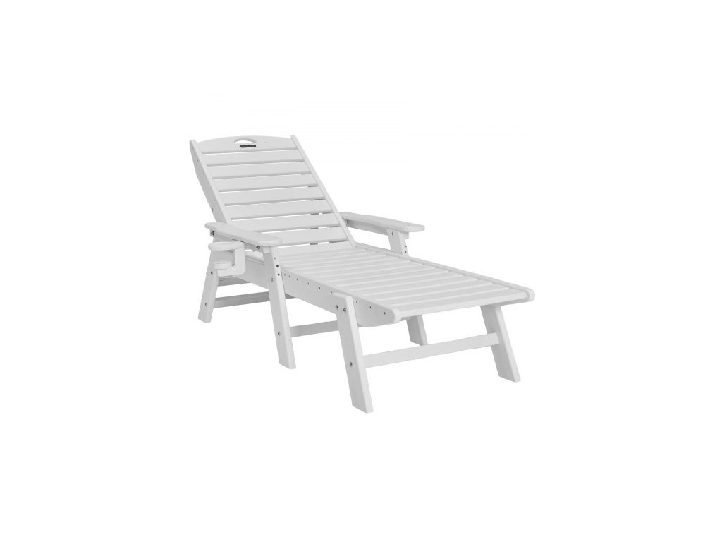 Lehátko , nosnost 181 kg, nastavitelné do 6 poloh, venkovní křeslo z HDPE s opěradlem a držákem na nápoje, k bazénu, terase u bazénu, na zahradě, na trávníku, bílé