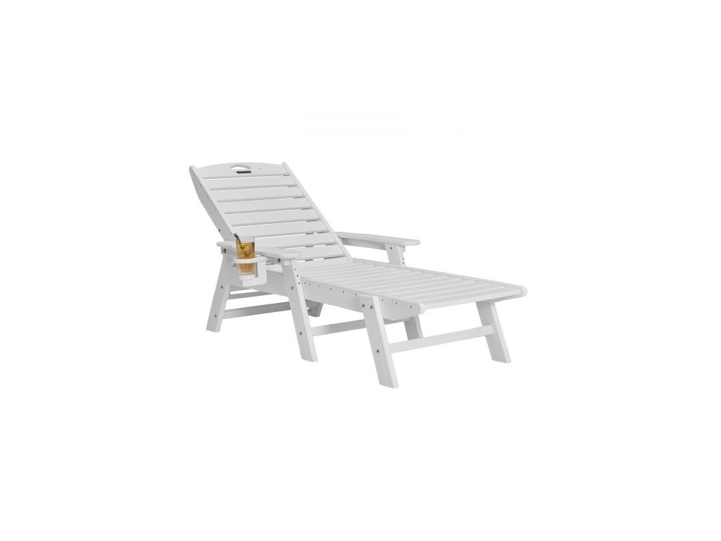Lehátko , nosnost 181 kg, nastavitelné zahradní křeslo v 6 polohách, venkovní HDPE křeslo s opěradlem a držákem na nápoje, k bazénu, terase, zahradě, trávníku, bíléVelká velikost a vysoká nosnost