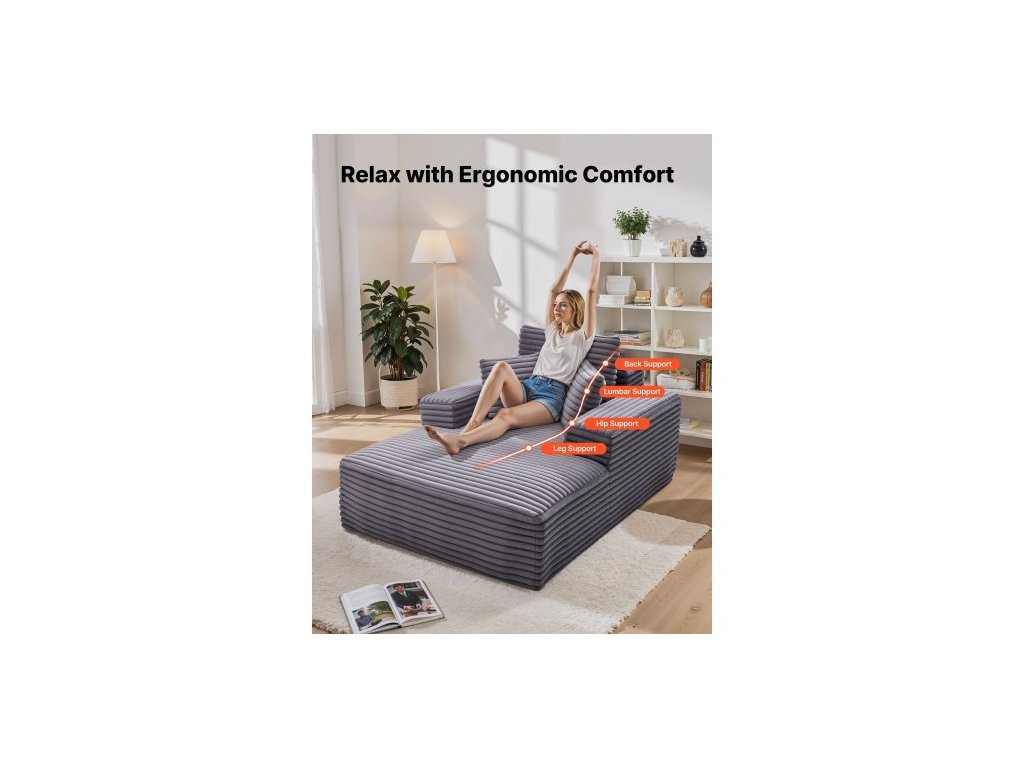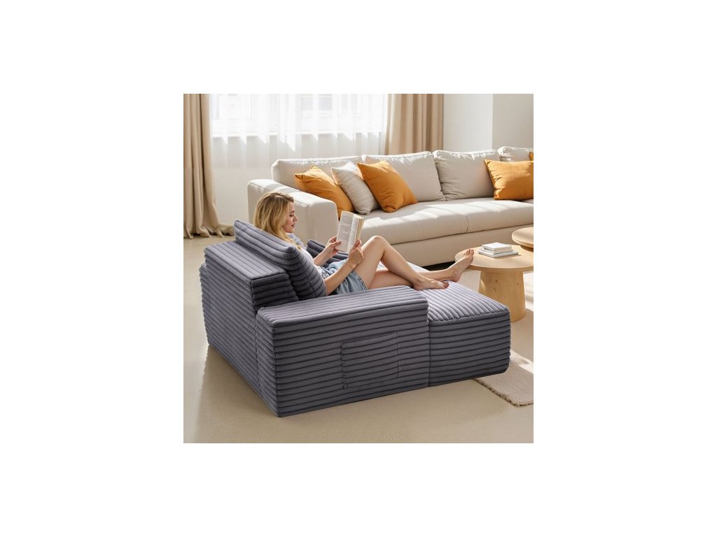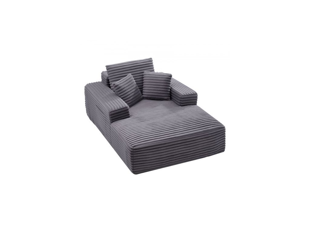 Lenoška , 1380 mm bezkostá lenoška do interiéru, moderní čalouněná nadrozměrná čtecí židle s polštáři a područkami, pohovka s hlubokým sedákem do obývacího pokoje, ložnice, šedáProstorné a útulné lehátko