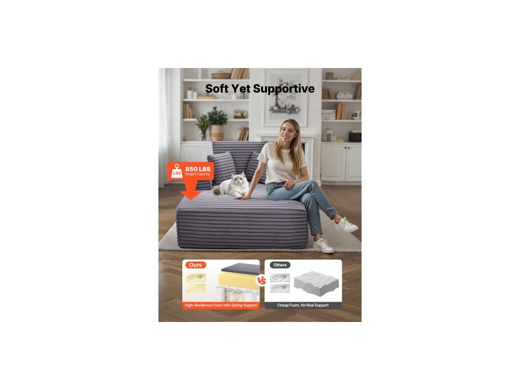 Barva: Šedá,Model: 8035,Rozměry: 54,33×59,06×27,56 palce / 1380×1500×700 mm,Výplň: Vysoce pružná houba + pružiny,Látka: 3,5cm pruhovaná umělá kožešina,Hmotnost: 39,5 kg / 87,08 lbs