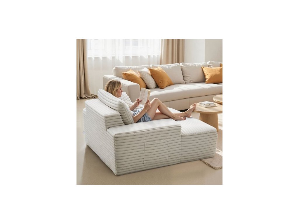 Lenoška , 1380 mm bezkostá lenoška do interiéru, moderní čalouněná nadrozměrná čtecí židle s polštáři a područkami, pohovka s hlubokým sedákem do obývacího pokoje, ložnice, béžováProstorné a útulné místo k odpočinku