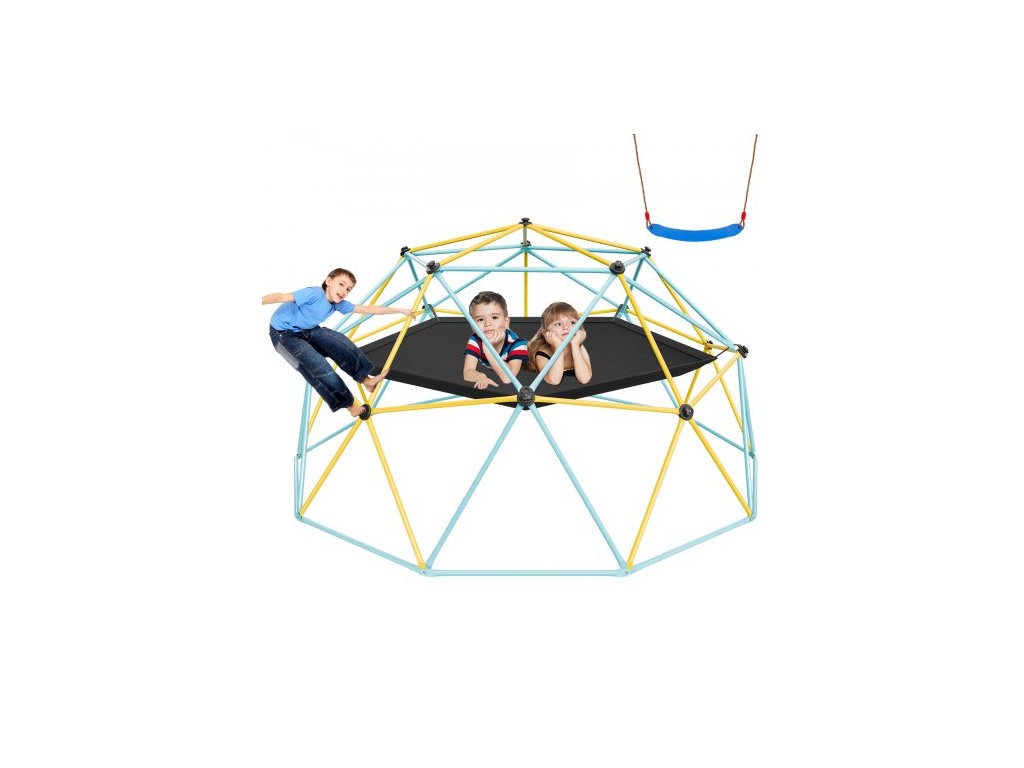 Lezecká kopule, 10 stop vysoká geometrická kopule s houpací sítí a houpačkou, pro děti od 3 do 10 let, prolézačka s nosností 750 liber a snadnou montáží, s lezeckou rukojetí, venkovní herní vybavení na zahraduGeometrická kopule s třemi prvky v jednom