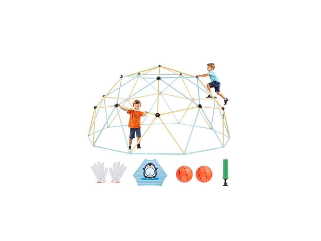 Lezecká kopule, geometrická kopule o průměru 305 cm, nosnost 453 kg, prolézačka, hřiště se 2 basketbalovými míči a sítí na chobotnice, snadno sestavitelná venkovní lezecké vybavení na zahradu pro děti od 3 do 10 let