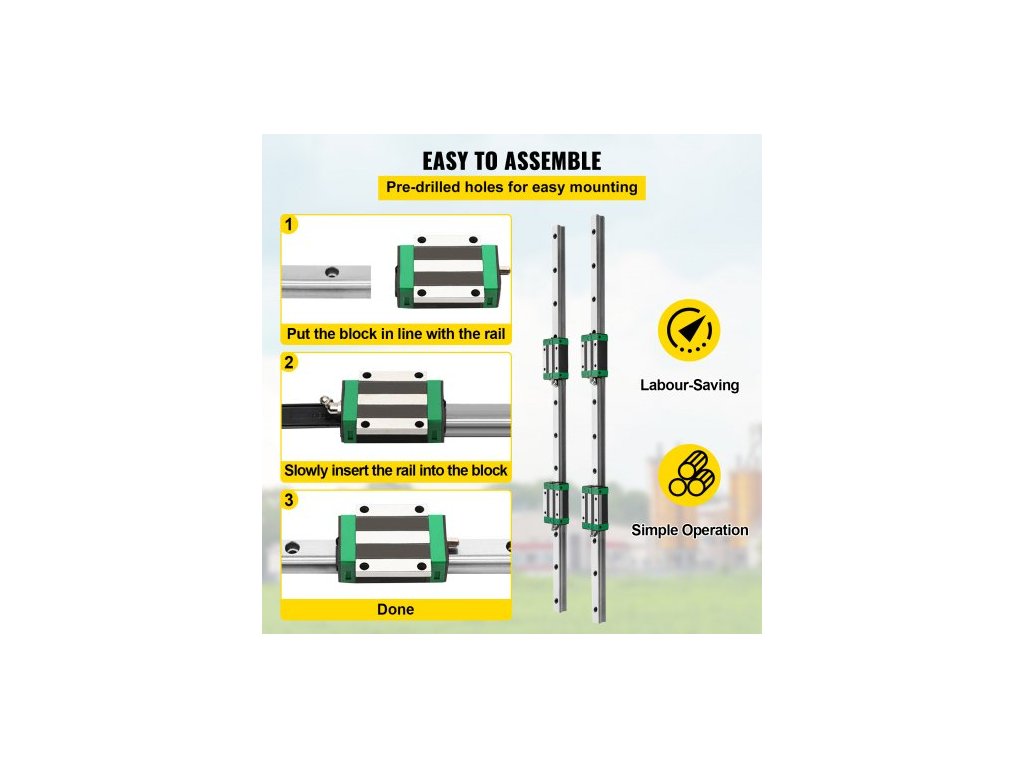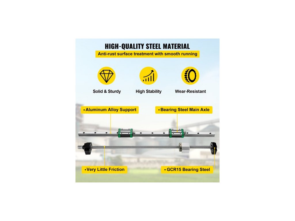 Lineární vodicí lišta 2 ks HGR20-1000mm lineární posuvná lišta s 1 ks RM1605-1000mm kuličkovým šroubem se sadou BF12/BK12 Lineární posuvná lišta Vodicí lišta Čtvercová pro kutilské CNC frézky Soustruhy Frézky Sady lineárních lišt HGR20-1000 Vysoce kvalitní materiál Vysoká tvrdost a tuhost Kompletní posuvná jednotka Snadná montáž Široké použití Délka hřídele lišty: 1000 mm/39,4 palce Typ: Posuvná lišta HGR20 Matice: matice BF12/BK12 Přípustný statický krouticí moment: 0,17 kNm Velikost otvoru pro upevňovací šroub: M4x16 mm Statické zatížení: 25,31 palce Materiál: ocel Gcr15 Výkon: Plynulý pohyb, Nízká hlučnostDoplňkové parametry