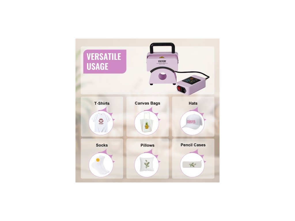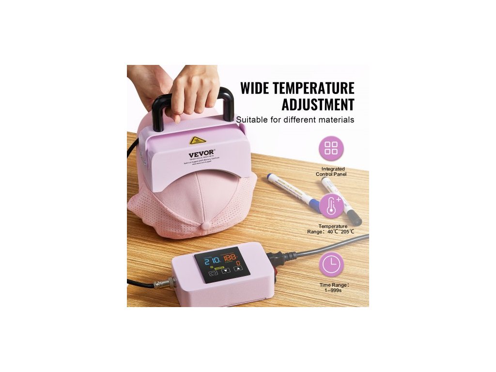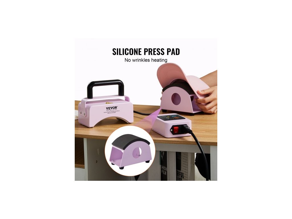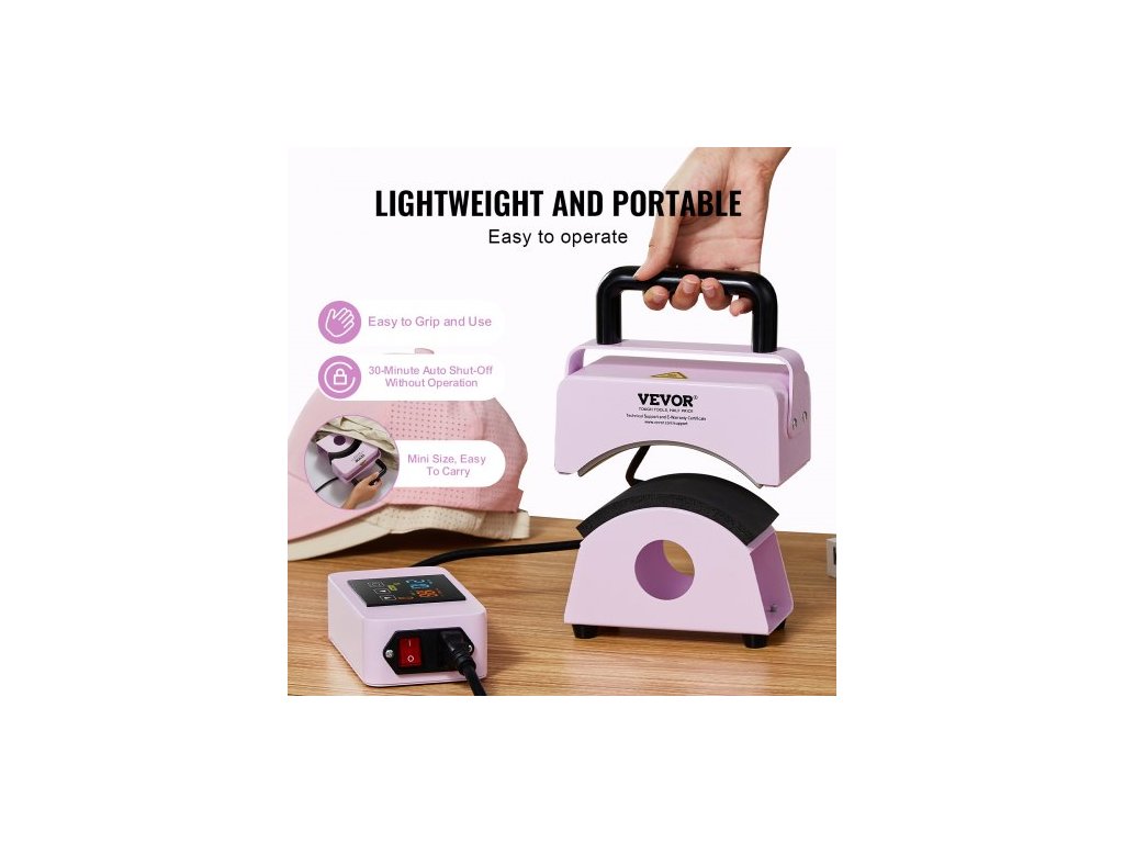 Lis na klobouky , mini lis na klobouky s integrovaným ovládacím panelem, lis na klobouky se zakřivenou topnou deskou 5,9x3,15 palce, bezpečnostní základnou a rukavicí, automatické vypnutí, fialováPersonalizované přizpůsobení