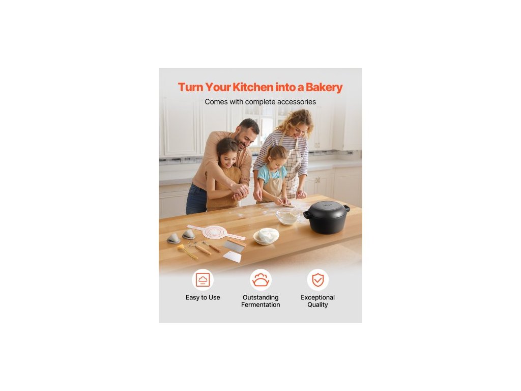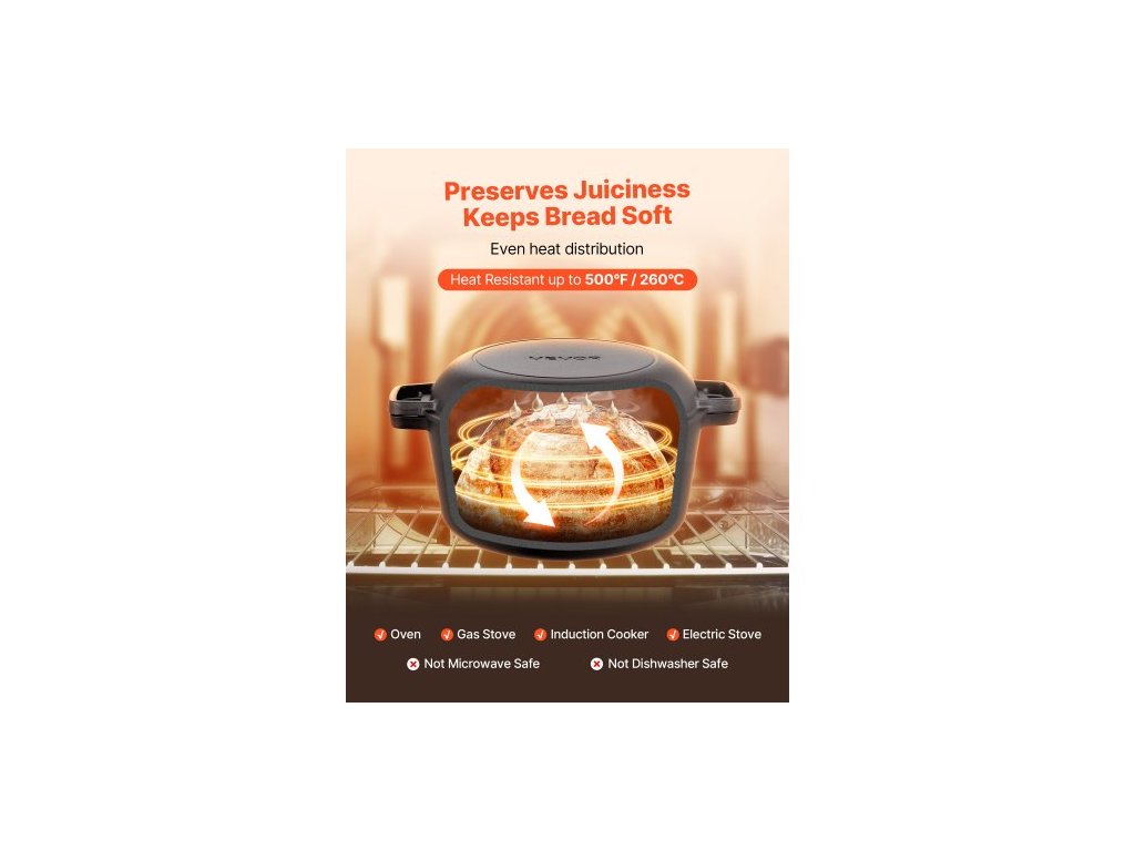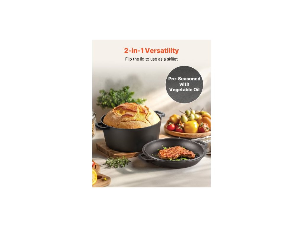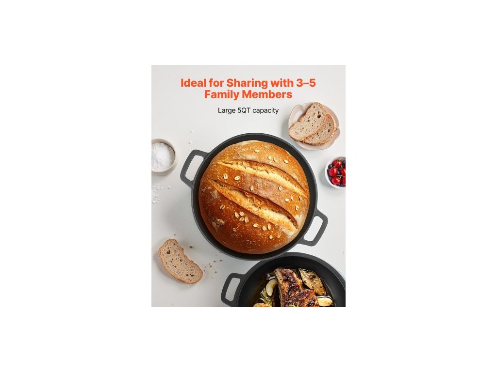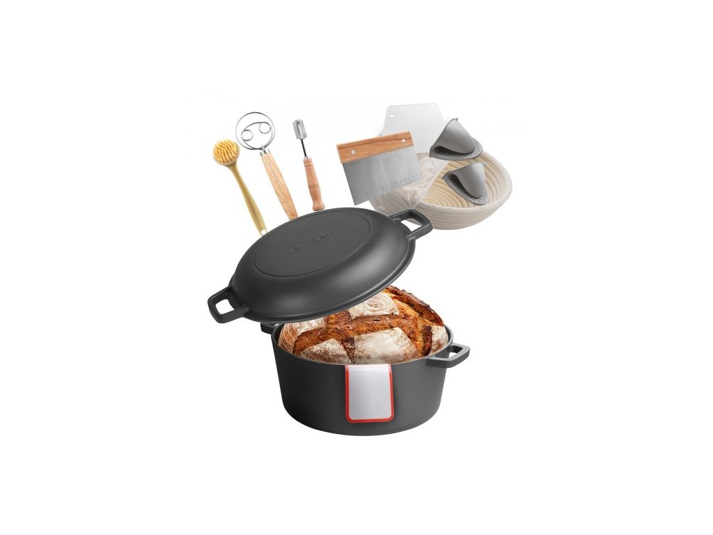 Litinová pec , hrnec 2 v 1 s předem ochuceným hrncem a poklicí, pánev o objemu 4,7 l s kypřicím košem, příslušenství na pečení chleba, kompatibilní s troubou na chléb do 260 ℃Velká kapacita