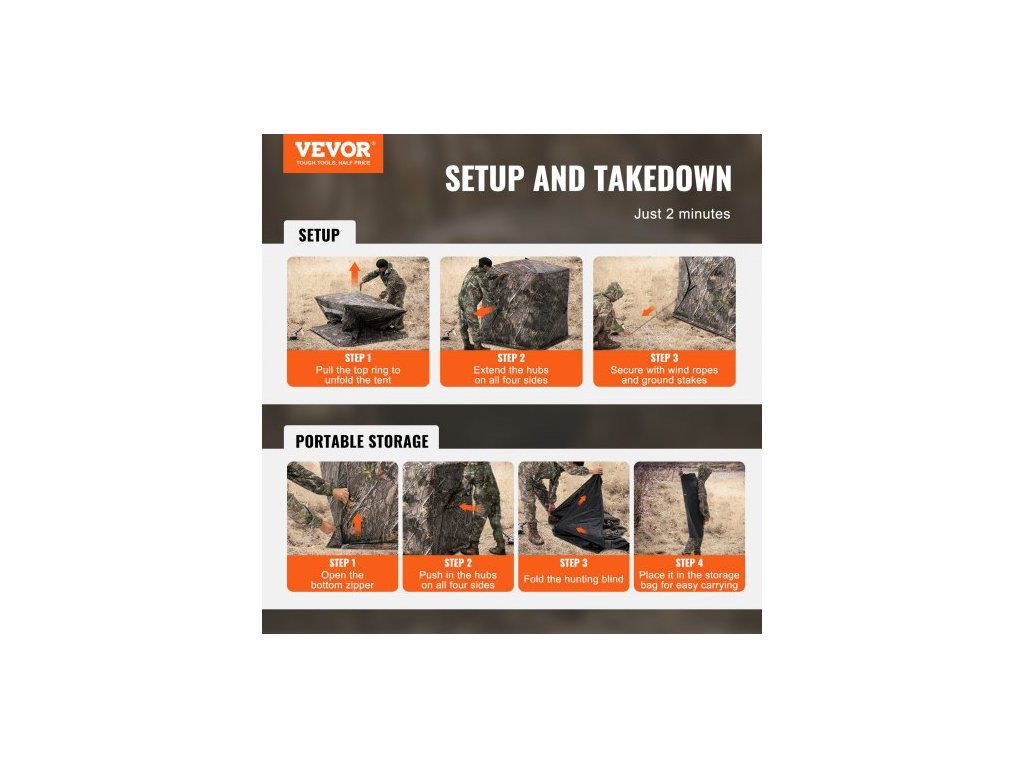 Číslo modelu položky: ZHS5567-1,Rozměry: 55,5" x 55,5" x 66,9" / 1410 x 1410 x 1700 mm,Čistá hmotnost: 13,1 lbs / 5,94 kg,Hlavní materiál: Maskovací látka 150D