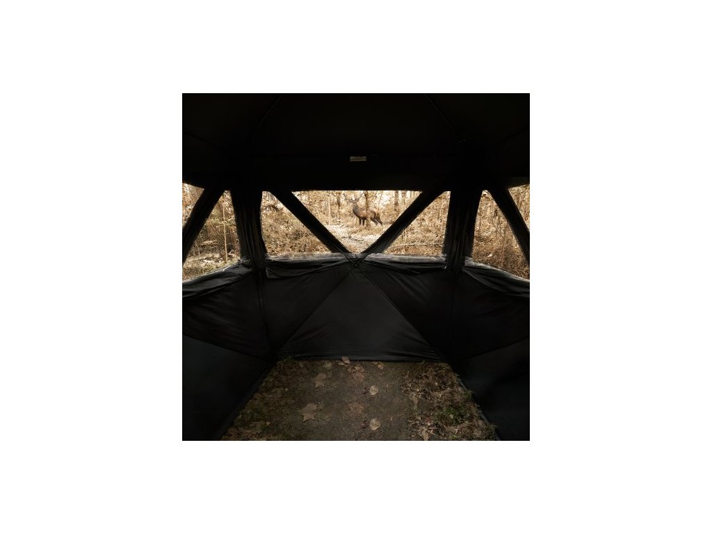 Lovecká roleta s průhledem do země, 270°, 3 síťovaná okna pro 1-2 osobyLovecká roleta s výhledem 270°