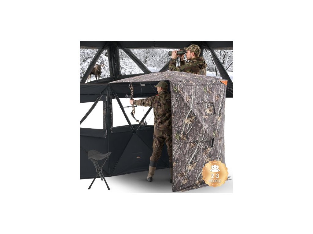 Lovecká roleta , termální zemní roleta pro 2-3 osoby s třínohou židlí a přepravní taškou, přenosný maskovací stan, odolný skrytý přístřešek s tichými zipovými dveřmi a oknem, pro krůtyPrémiový materiál