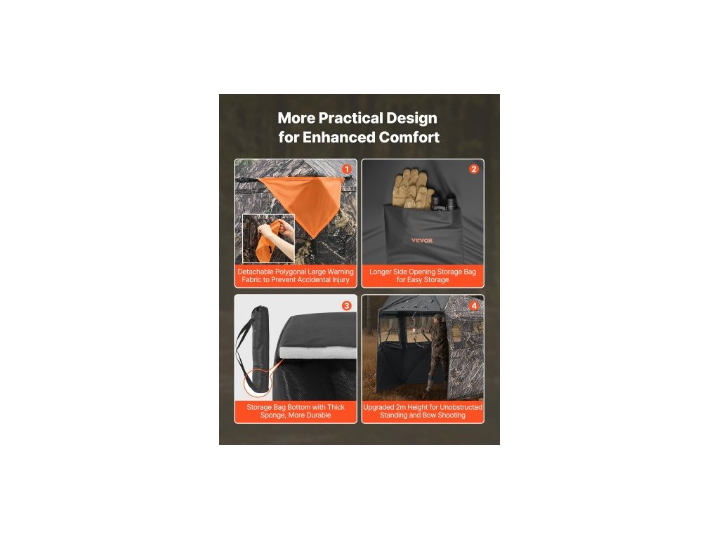 Číslo modelu položky: ZH848479-SW,Hmotnost výrobku: 8,67 kg / 19,92 lbs,Rozměry výrobku: 2150x2150x2000 mm / 84,65x84,65x78,74 palce,Hlavní materiál: Voděodolná maskovací tkanina 150D