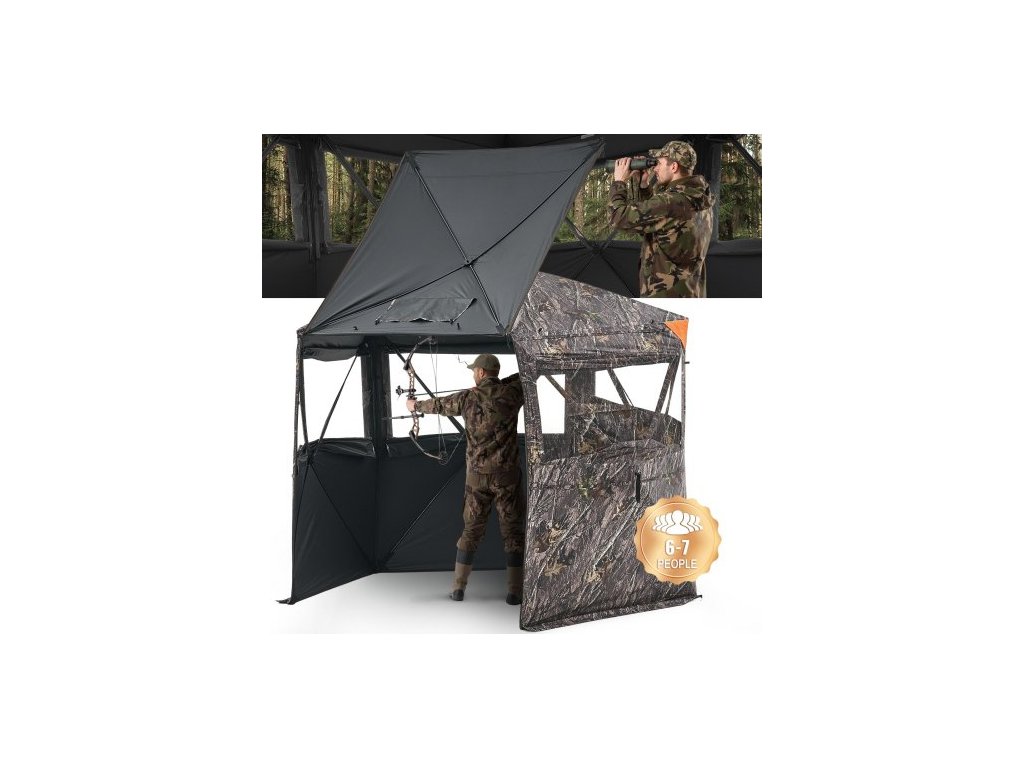 Lovecký stan , 6-7 osob, zemní clona s přepravní taškou, přenosný maskovací stan, zesílený odolný skrytý přístřešek s tichými zipovými dveřmi a oknem, pro krůty a jeleny