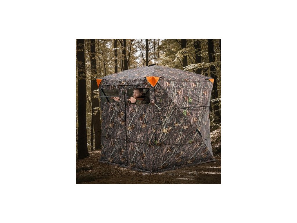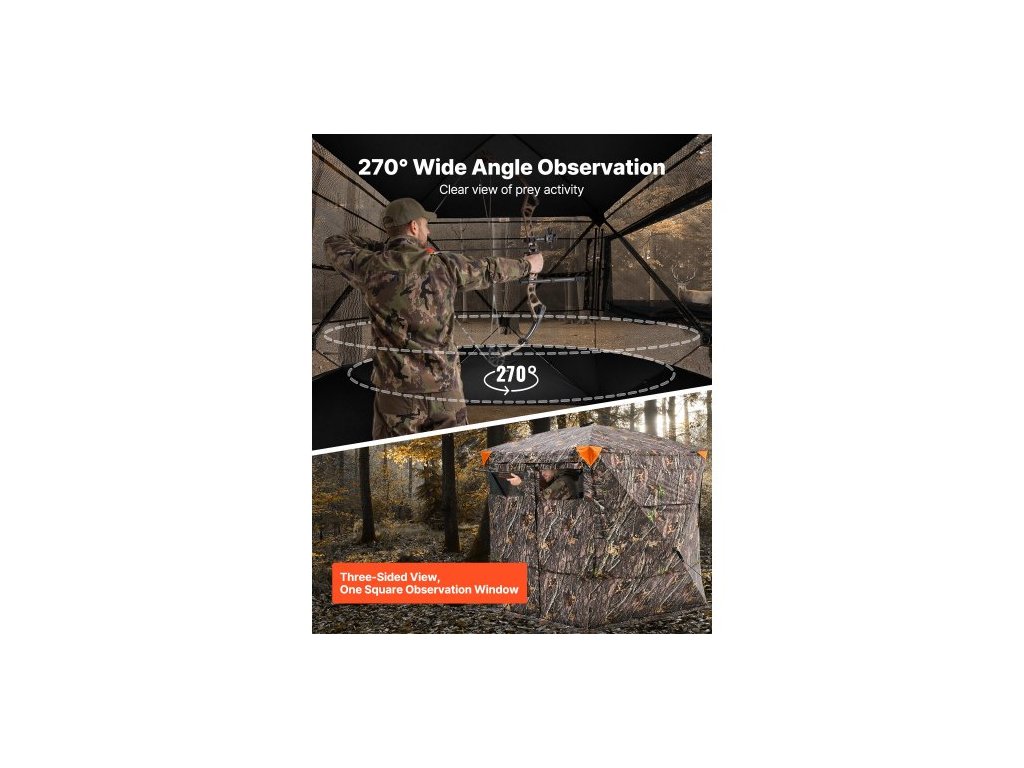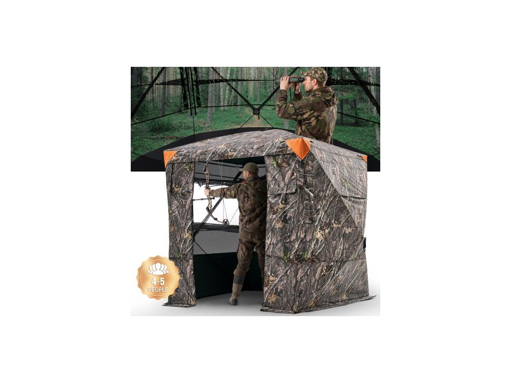 Lovecký stan , průhledná roleta do země pro 4-5 osob s přepravní taškou, přenosný maskovací stan s úhlem krytí 270 stupňů, odolný skrytý přístřešek s tichými magnetickými dveřmi a oknem, pro krůty a jeleny