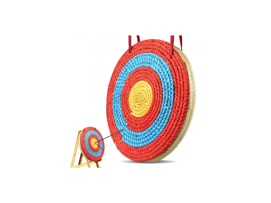 Lukostřelecký terč , 3vrstvý terč na šípy o průměru 20", tradiční kulatý lukostřelecký luk z pevné slámy, ručně vyrobený terč na šípy, barevný lanový terč pro venkovní lov a střelbu na zahraděPevná sláma