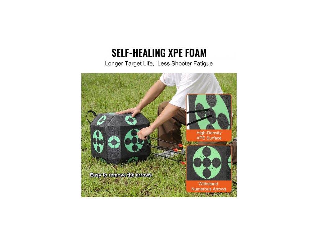 Lukostřelecký terč , terč na šípy pro střelbu ze všech stran 15"x15", venkovní přenosný lukostřelecký terč s rukojetí, snadné vyjmutí šípu, skvělá viditelnost, nízká hmotnost, snadná přeprava, černáSamoopravitelný XPE pěnový