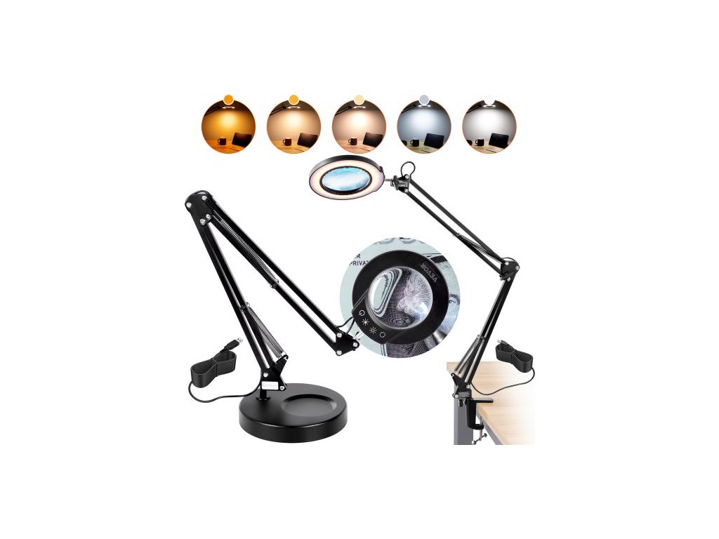 Lupa se světlem a podstavcem, 5násobná lupa, 10,9 cm čočka, 5 barev