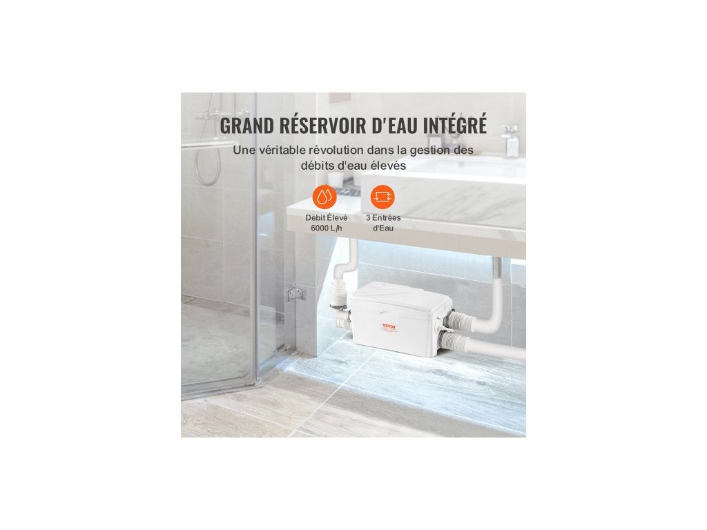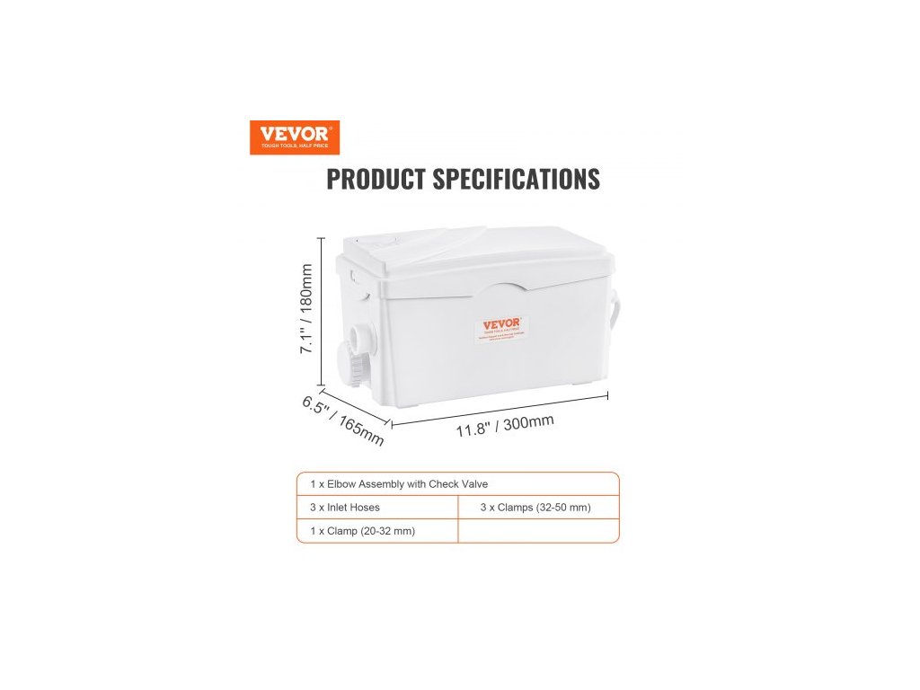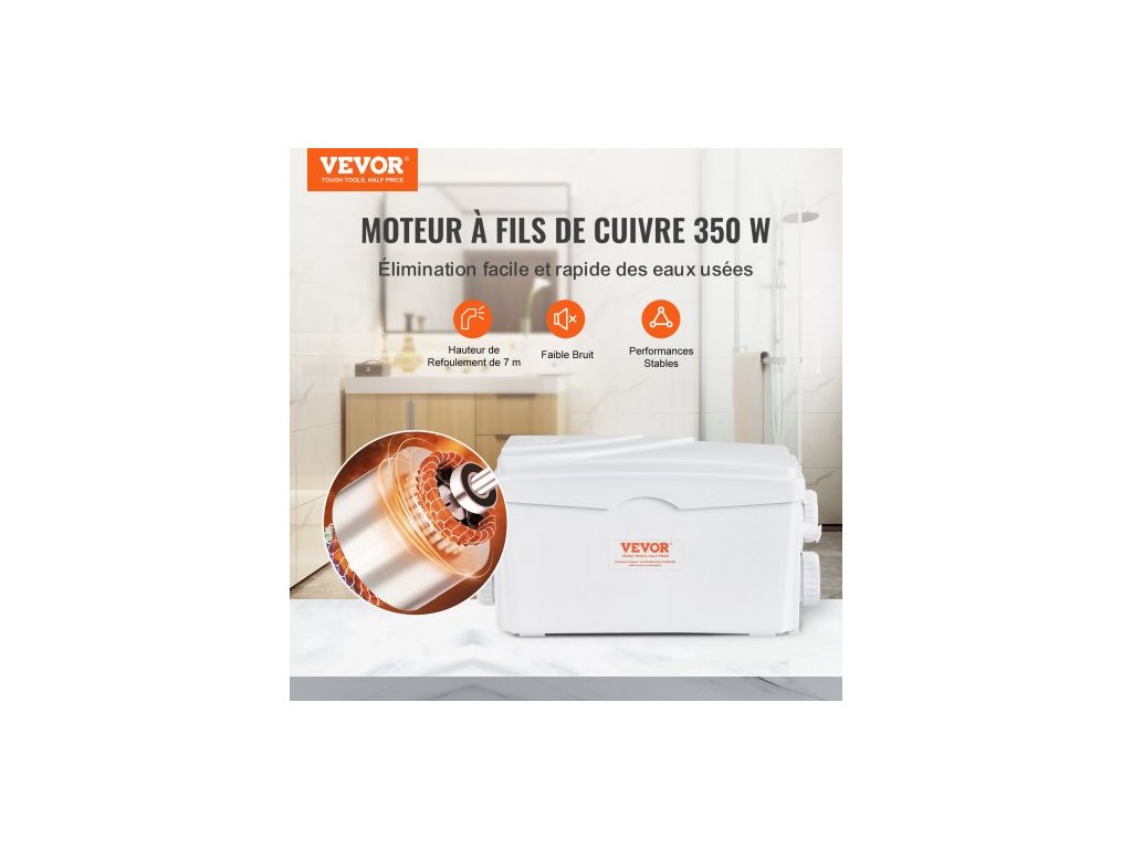 Macerátorové čerpadlo , 350 W, průtok 6000 l/h, dopravní výška 7 m, macerátorové kanalizační čerpadlo se 3 přívody vody pro suterén, kuchyň, dřez, sprchu, vanu, prádelnu, likvidaci odpadních vod splachováním