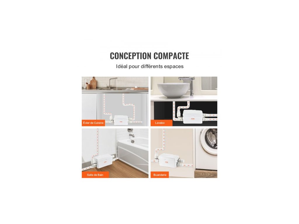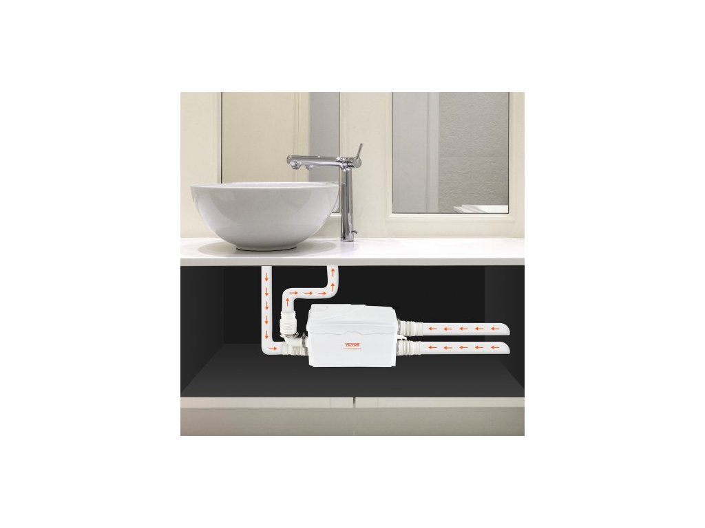 Macerátorové čerpadlo, 350 W, průtok 6000 l/h, dopravní výška 7 m, Macerátorové kanalizační čerpadlo se 3 přívody vody pro suterén, kuchyň, dřez, sprchu, vanu, prádelnu, likvidaci odpadních vod, splachováníHumanizovaný odvzdušňovací ventil