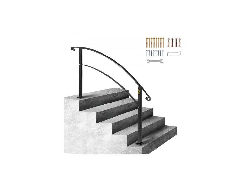 Madla pro venkovní schody, pasují na 1 nebo 5 schodů, černé kované železné madlo, flexibilní madlo na verandu, přechodové madlo pro betonové nebo dřevěné schodyVhodné pro 5 schodů