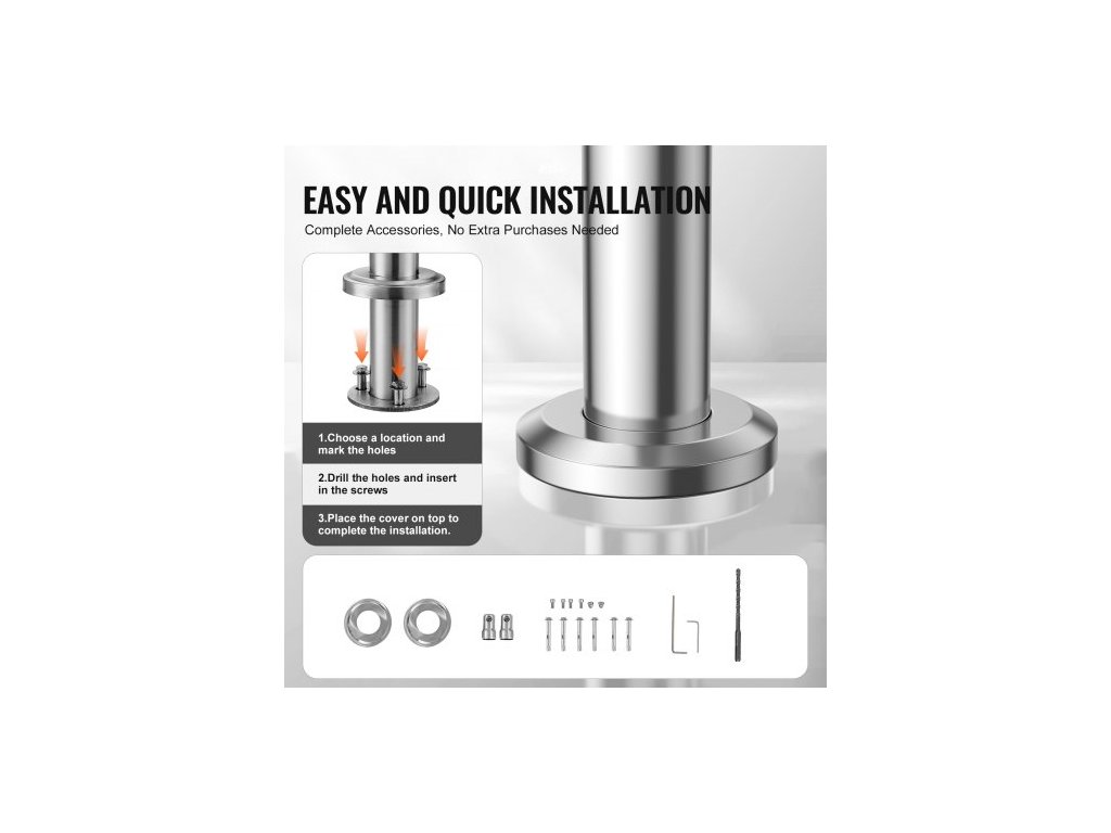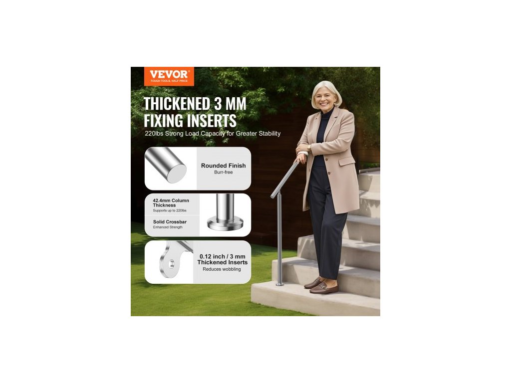 Madla pro venkovní schody, sada madel na schody o délce 150 cm, přechodové nerezové zábradlí s instalační sadou, dvousloupové schodišťové madlo pro seniory, veranda a terasaSpolehlivá bezpečnost a stabilita
