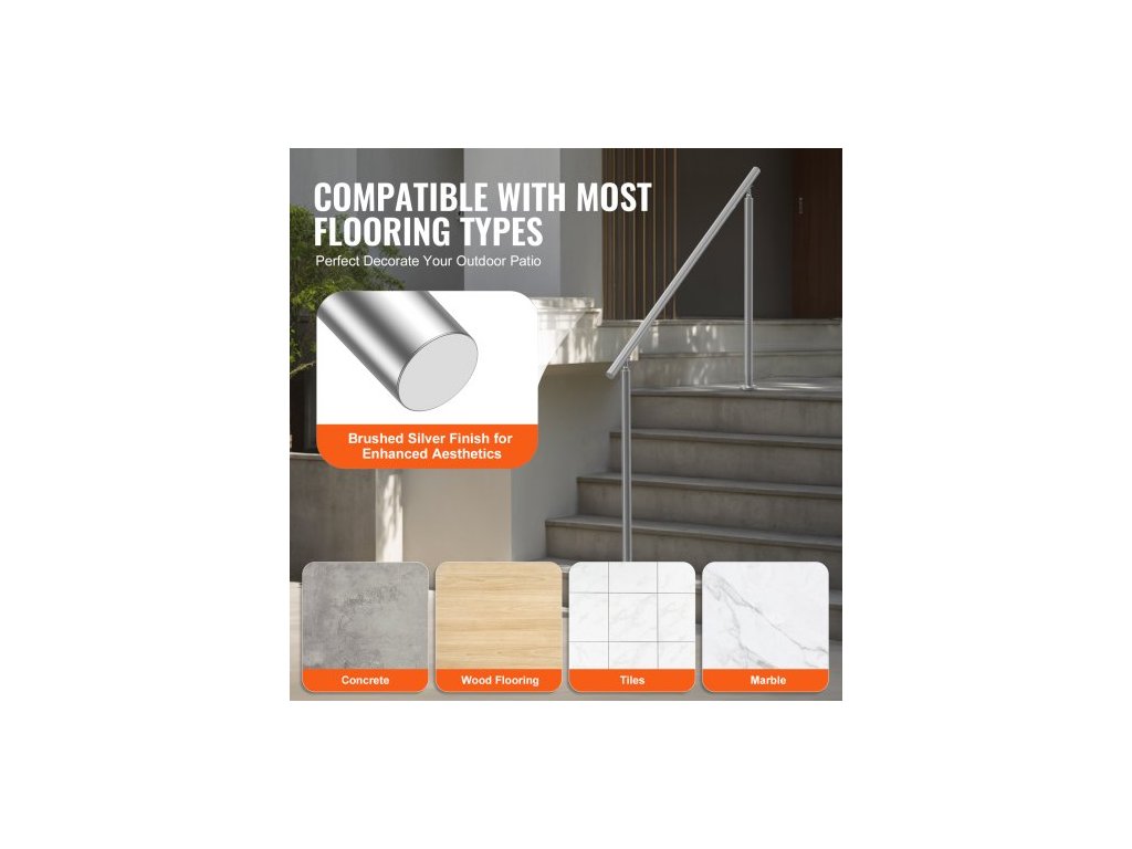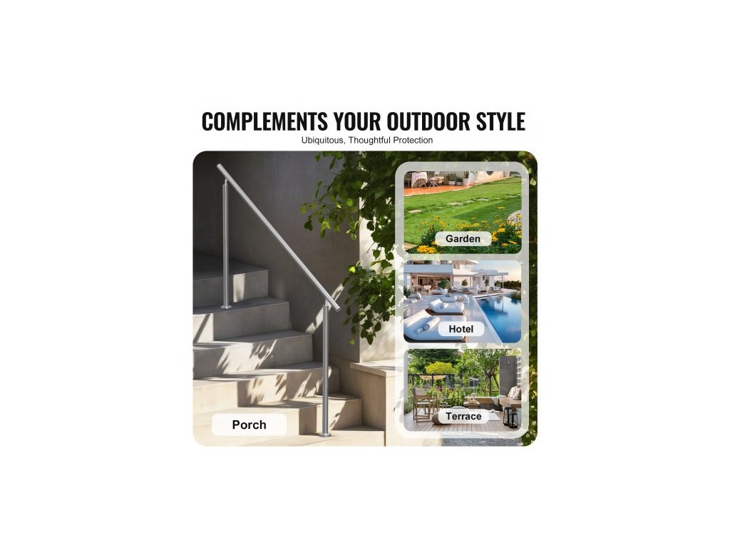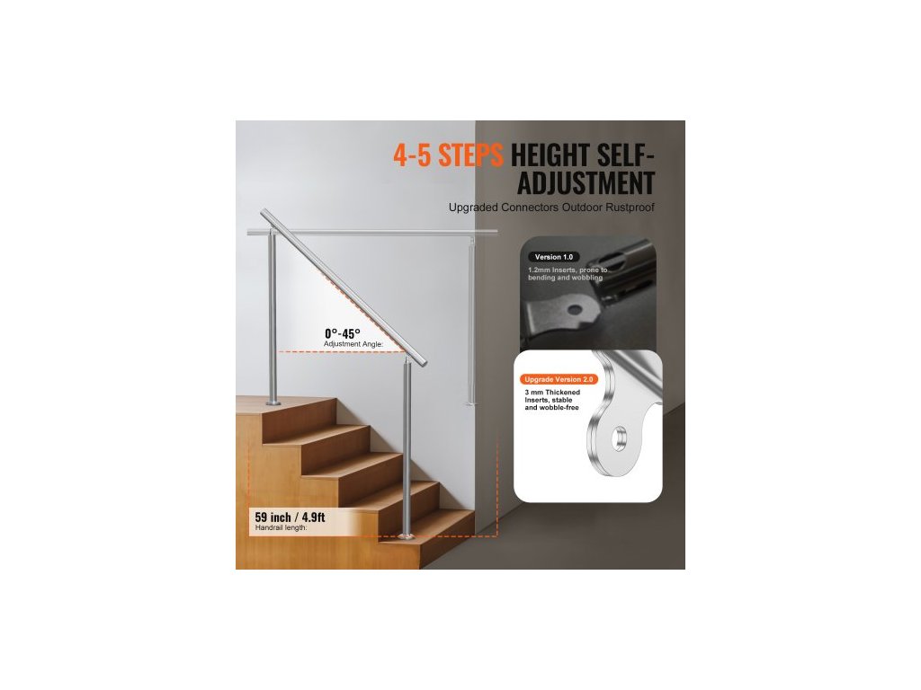 Madla pro venkovní schody, sada madel na schody o délce 59 palců / 150 cm, přechodové zábradlí z nerezové oceli s instalační sadou, dvousloupové madlo na schodiště pro seniory, veranda a terasa