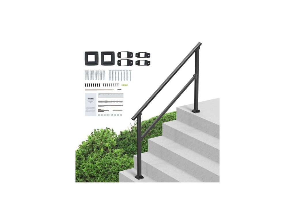 Madla pro venkovní schody, sada madel na schody pro 4-5 schodů, přechodové zábradlí z uhlíkové oceli s instalační sadou, schodišťové zábradlí pro seniory, betonové schody a verandy a terasy, černá čtvercová trubkaSpolehlivá bezpečnost a stabilita