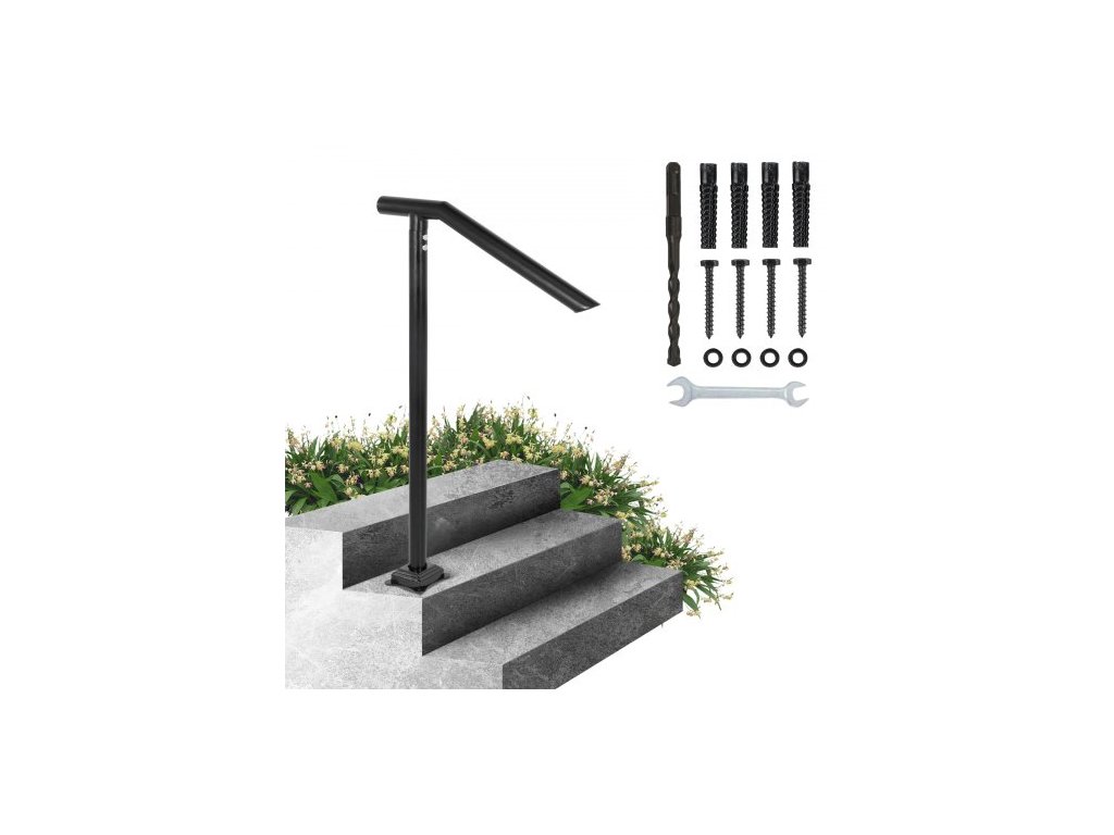 Madlo , 1-3 schody, černé ocelové zábradlí pro schody, nosnost 330 liber, schodišťové madlo, lakované kovové madlo pro schody, stylové madlo pro venkovní schody s rozpěrnými šrouby a vrtákem.