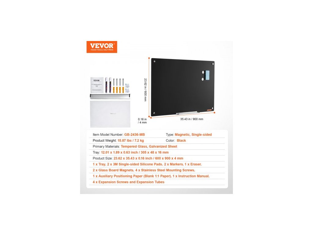 Odkládací stolek: 12,01 x 1,89 x 0,63 palce/305 x 48 x 16 mm,Typ: Magnetický, jednostranný,Primární materiály: Tvrzené sklo, pozinkovaný plech,Barva: Černá,Číslo modelu položky: GB-2436-MB,Hmotnost výrobku: 15,87 lbs/7,2 kg,Rozměry výrobku: 23,62 x 35,43 x 0,16 palce/600 x 900 x 4 mm