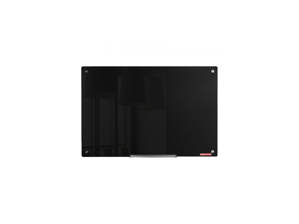 Magnetická skleněná bílá tabule , tabule s mazáním za sucha, 91 x 61 cm, nástěnná velká bílá skleněná tabule bez rámu, s odkládacím stolkem na fixy, gumou a 2 fixy, černá