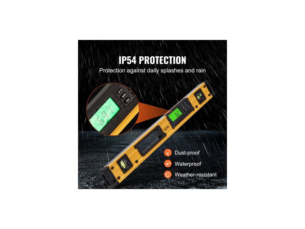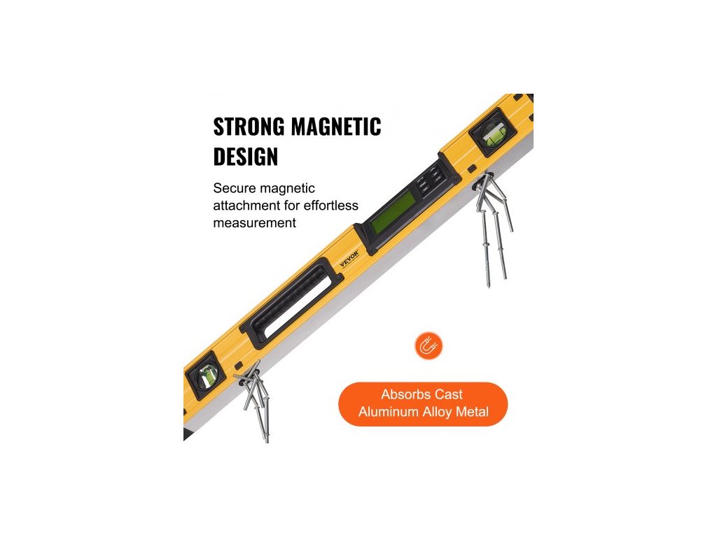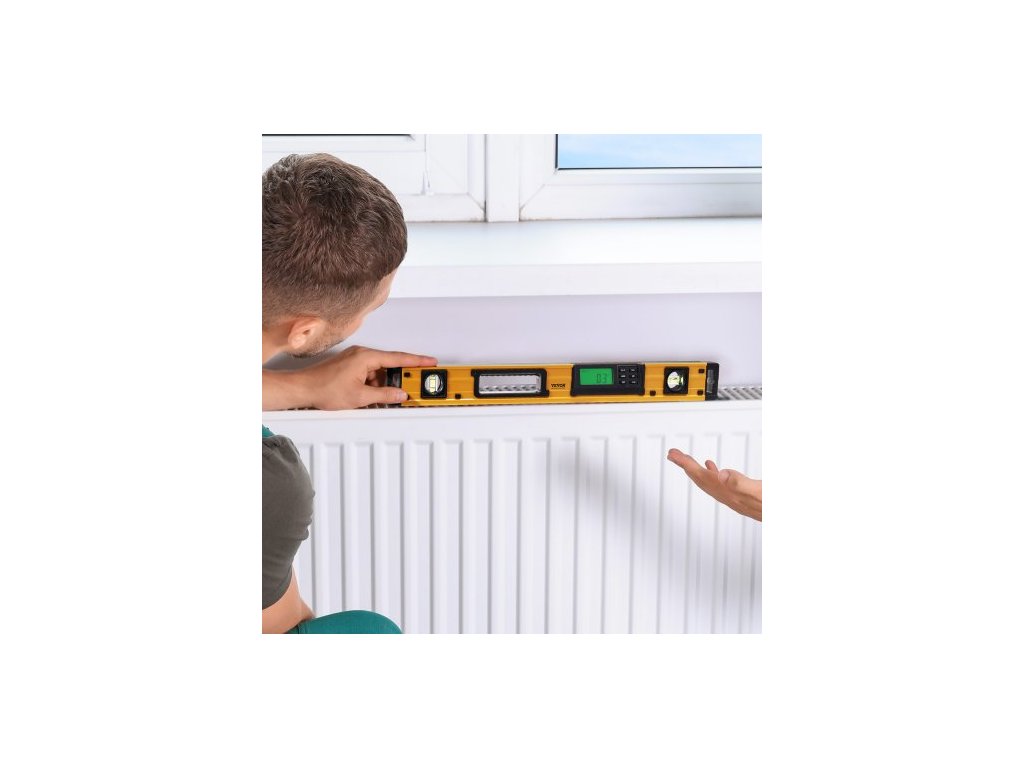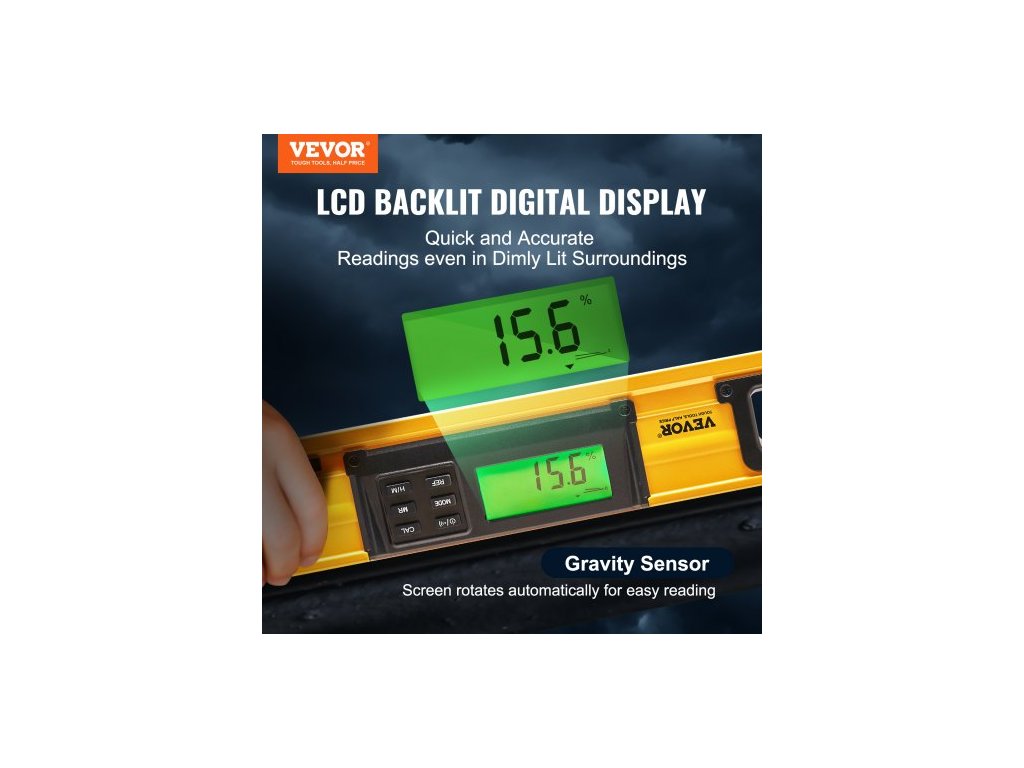 Magnetická torpédová vodováha , 600 mm, LED podsvícená obrazovka, mechanické pravítko s bublinkami pro 0-360 stupňů, gravitační senzor, hliníková slitina, nivelační nástroj s průzorem, nárazuvzdorný pro instalatérské práce, dřevo