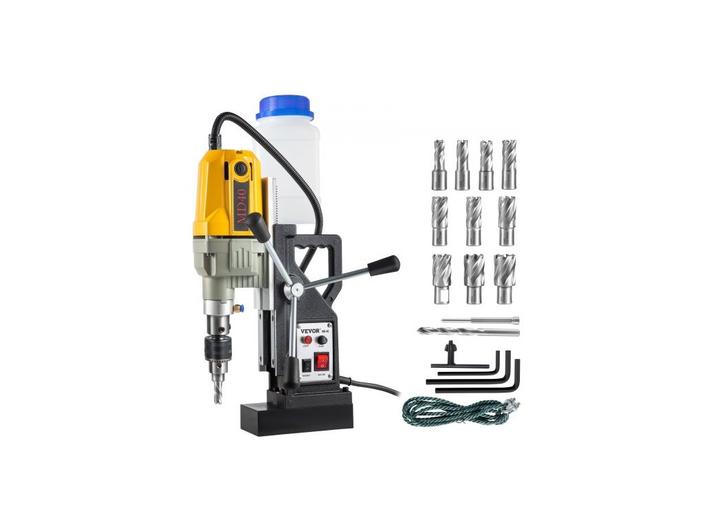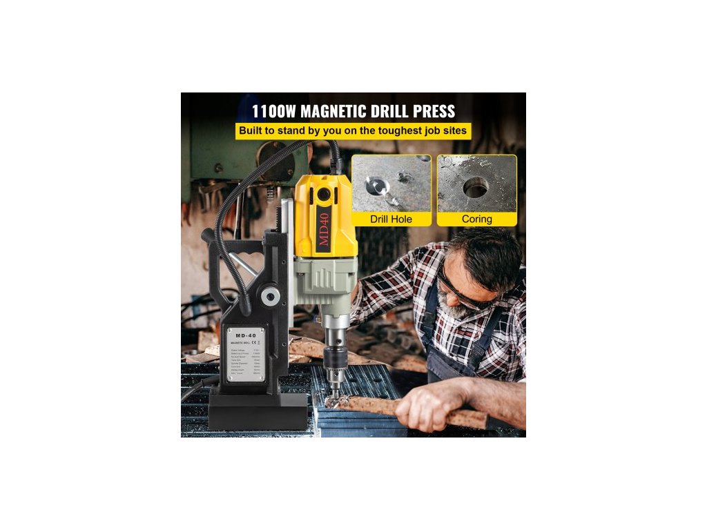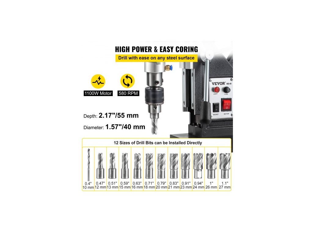 Magnetická vrtačka , 1100 W, průměr vrtání 4 cm, přenosná elektrická magnetická vrtačka s 12 bity, maximální rychlost 580 ot./min., vrtačka pro jakýkoli povrch a domácí úpravyVynikající výkon