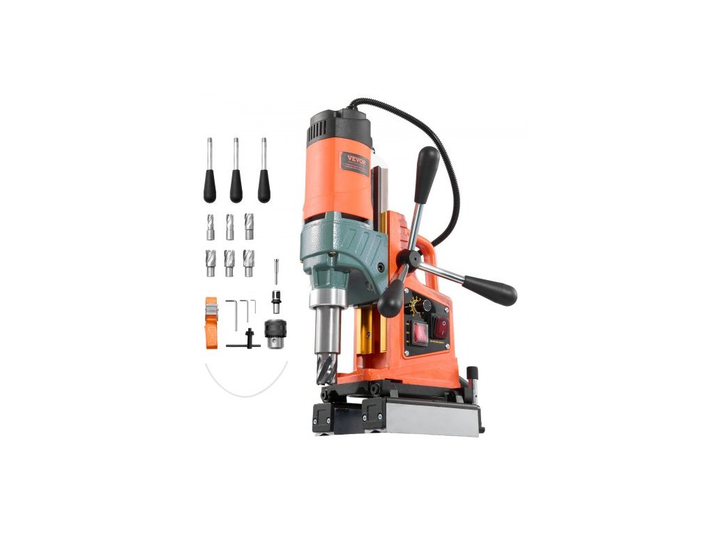 Magnetická vrtačka , 1400 W, průměr vrtání 50 mm, otáčky 0–850 ot./min, možnost změny směru otáčení, magnetická vrtačka se 6 vrtacími korunkami, elektrická vrtačka pro průmysl a domácí kutily