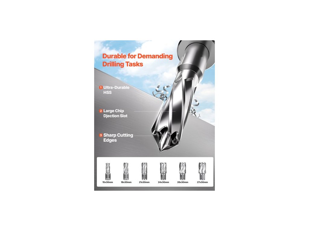 Magnetická vrtačka , motor 1450 W, průměr vrtání 2 palce, přenosná elektrická magnetická vrtačka 2878 lbf, se 6 jádrovými vrtáky, variabilní rychlost, vrtačka na kovové povrchy, pro domácí kutilyVýkonný výkon