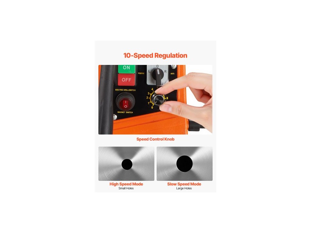 Čistá hmotnost (včetně veškerého příslušenství): 27,6 lb / 12,5 kg,Otáčky vpřed bez zátěže: 0–850 ot/min,Otáčky vzad bez zátěže: 0–800 ot/min,Max. průměr vrtání (jádrový vrták): Φ2 palce / Φ50 mm,Max. průměr vrtání (spirálový vrták): Φ0,1–0,6 palce / Φ3–16 mm,Typ stopky: Stopka Weldon,Max. Hloubka vrtání (spirálový vrták): 100 mm, Maximální zátěž: 1450 W, Maximální magnetická síla: 12800 N, Rozsah velikostí závitníků: M3-M16, Číslo modelu položky: MDP-50, Max. hloubka vrtání: 50 mm, Max. dráha vrtání: 220 mm