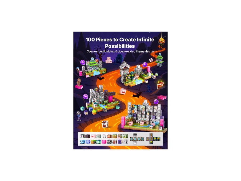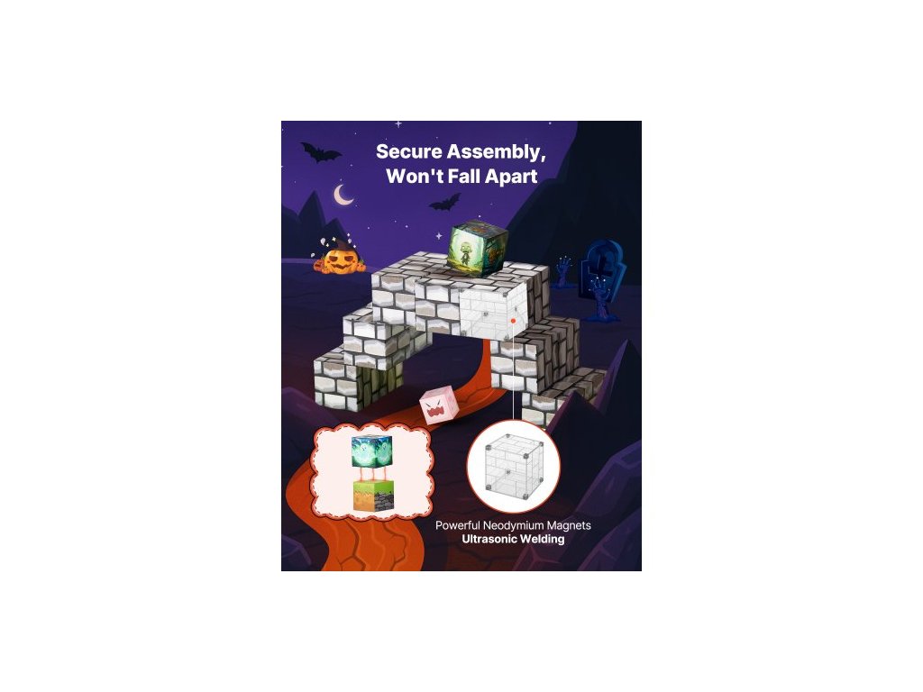 Magnetické kostky, sada 100 dílků hřbitovních zombií, magnetické stavební kostky pro děti, senzorické hračky STEM Montessori jako vánoční dárek k narozeninám, stohovací stavebnice pro chlapce a dívky od 3 letVšestranná zábava