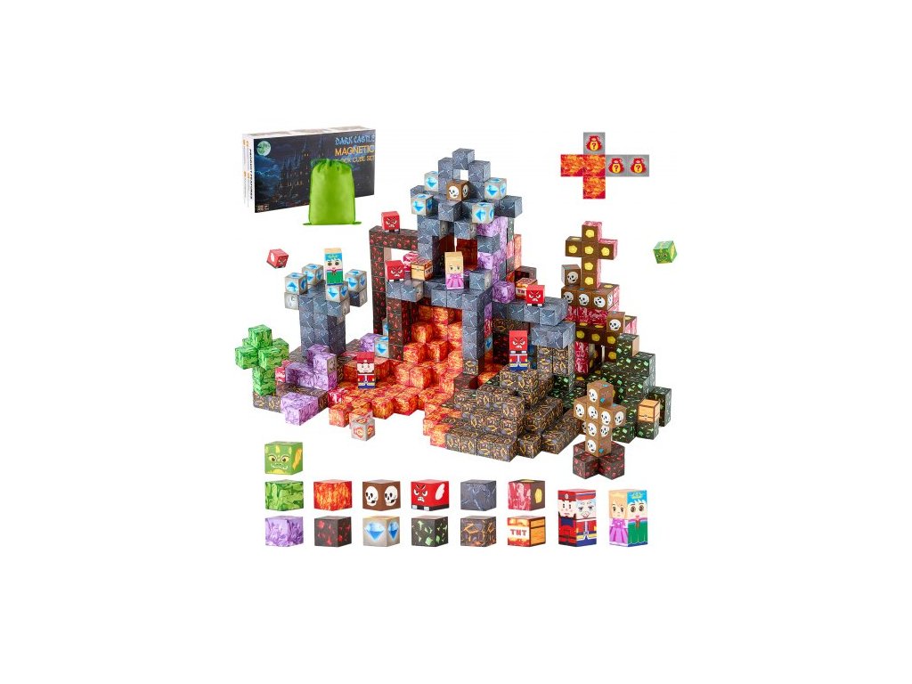 Magnetické kostky, sada 100 dílků Temný hrad, magnetické stavební kostky pro děti, senzorické hračky STEM Montessori jako vánoční dárek k narozeninám, skládací stavebnice pro chlapce a dívky od 3 letVšestranná zábava