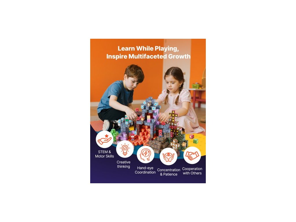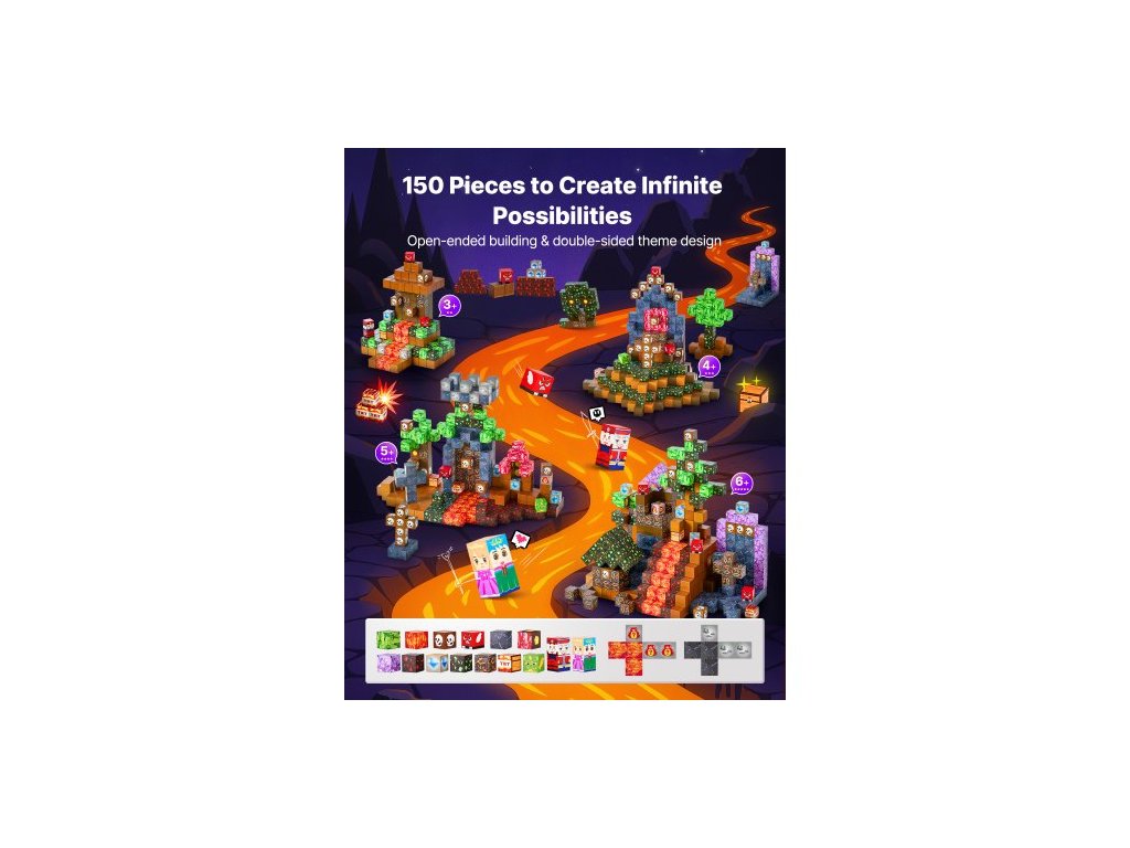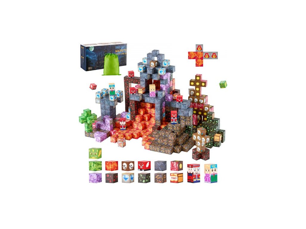 Magnetické kostky, sada 150 dílů Temný hrad, magnetické stavební kostky pro děti, senzorické hračky STEM Montessori jako vánoční dárek k narozeninám, stohovací stavebnice pro chlapce a dívky od 3 letVšestranná zábava