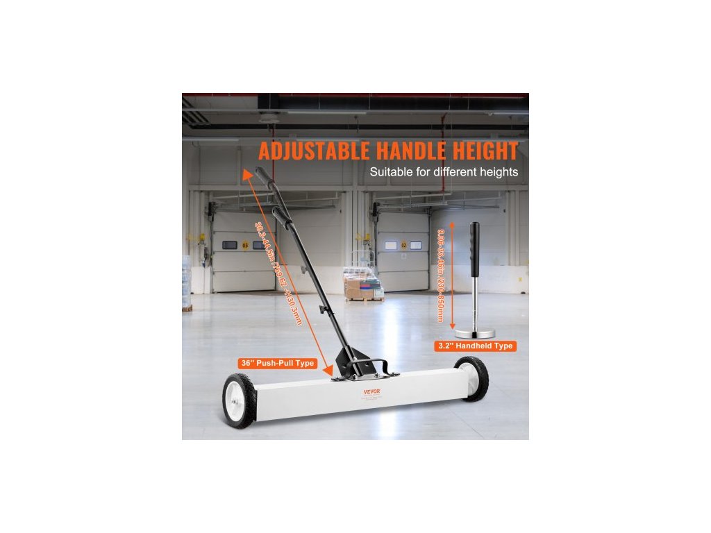 Magnetický zametač 36 palců s kolečky, nosnost 55 liber, s teleskopickým magnetickým sběrným nástrojem, nastavitelná rukojeť, magnetický sběrný zametač na sbírání hřebíků a šroubů, pro dílnu, garáž, zahradu